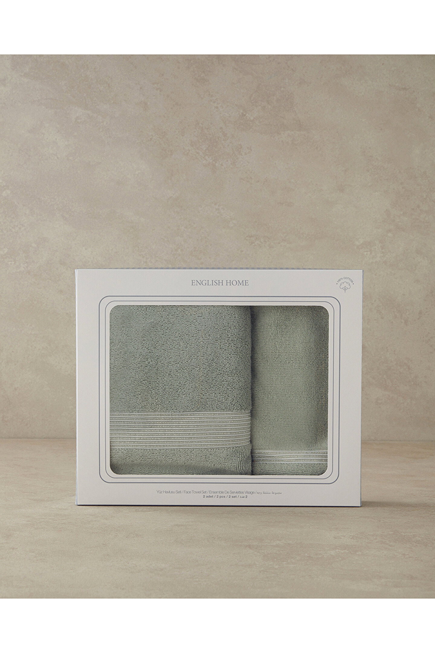 English Home Shiny Stripe Pamuklu Yüz Havlusu Seti Su Yeşili