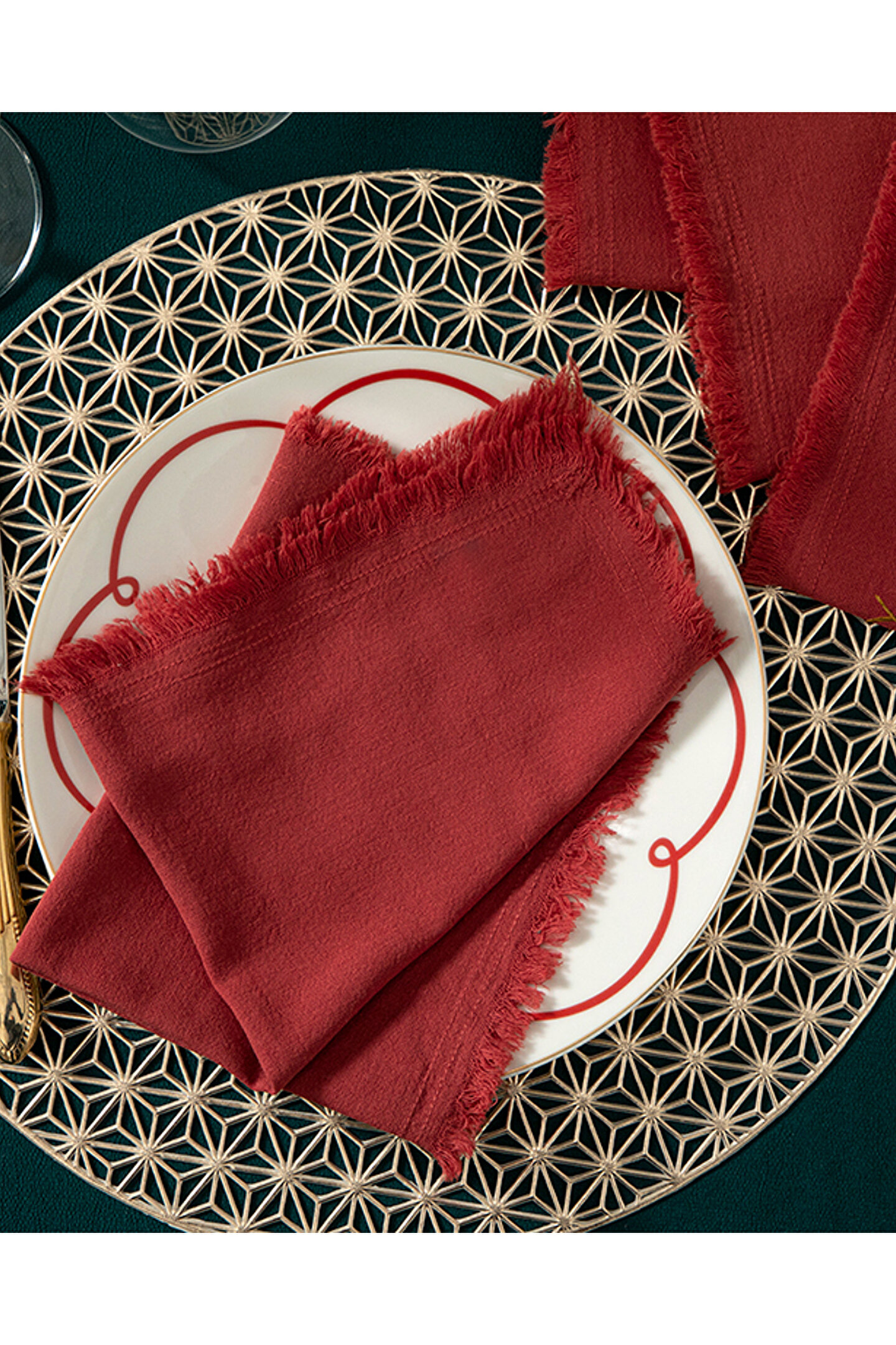 English Home Smooth Fringes Pamuk 6lı Misafir Peçetesi Bordo