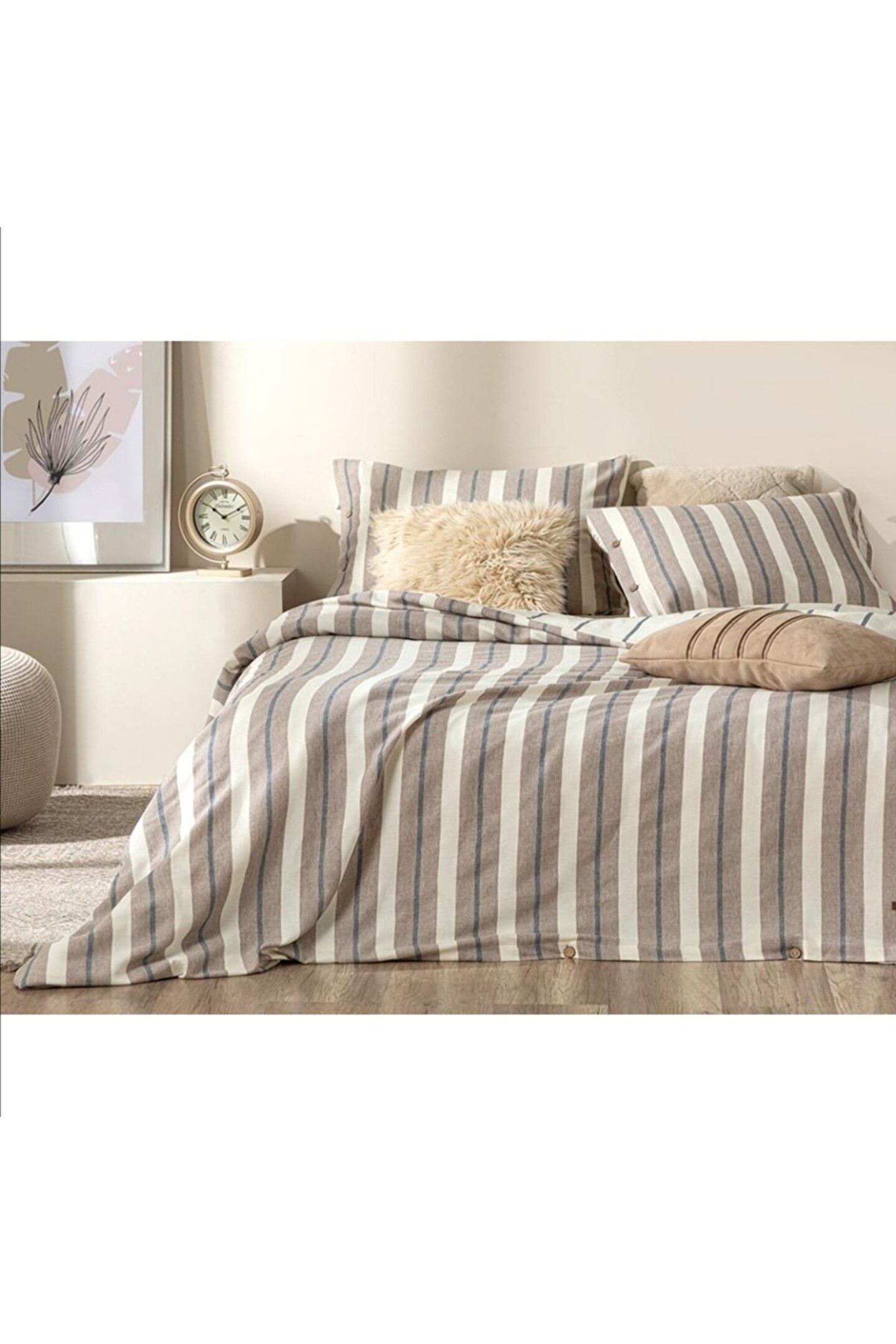 Vittate Natural Ipliği Boyalı Çift Kişilik Nevresim Takımı 200x220 Cm Kahve – Lacivert
