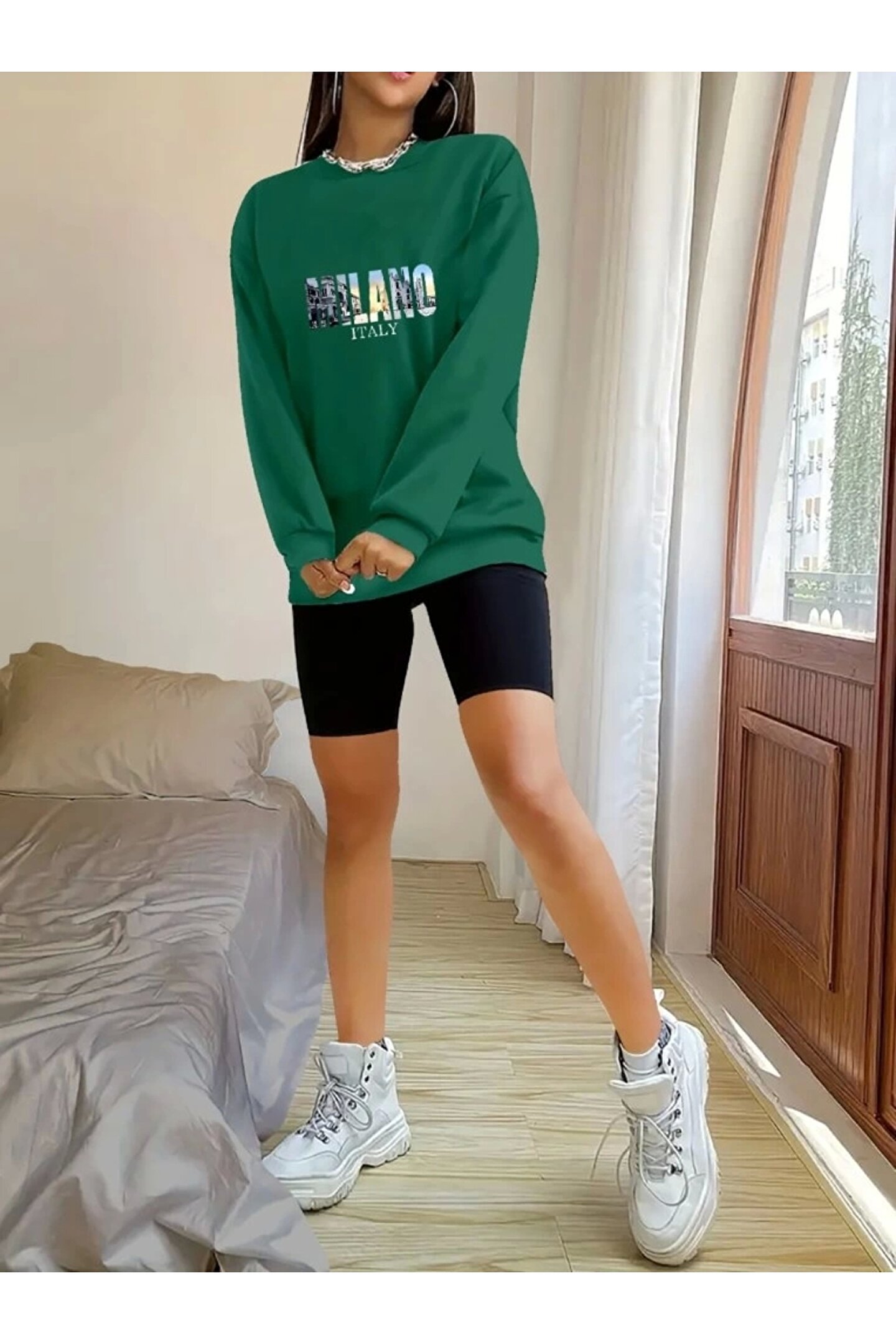 Eosds Kadın Uzun Kollu Bisiklet Yaka Desenli Viskon Iki Iplik Bluz