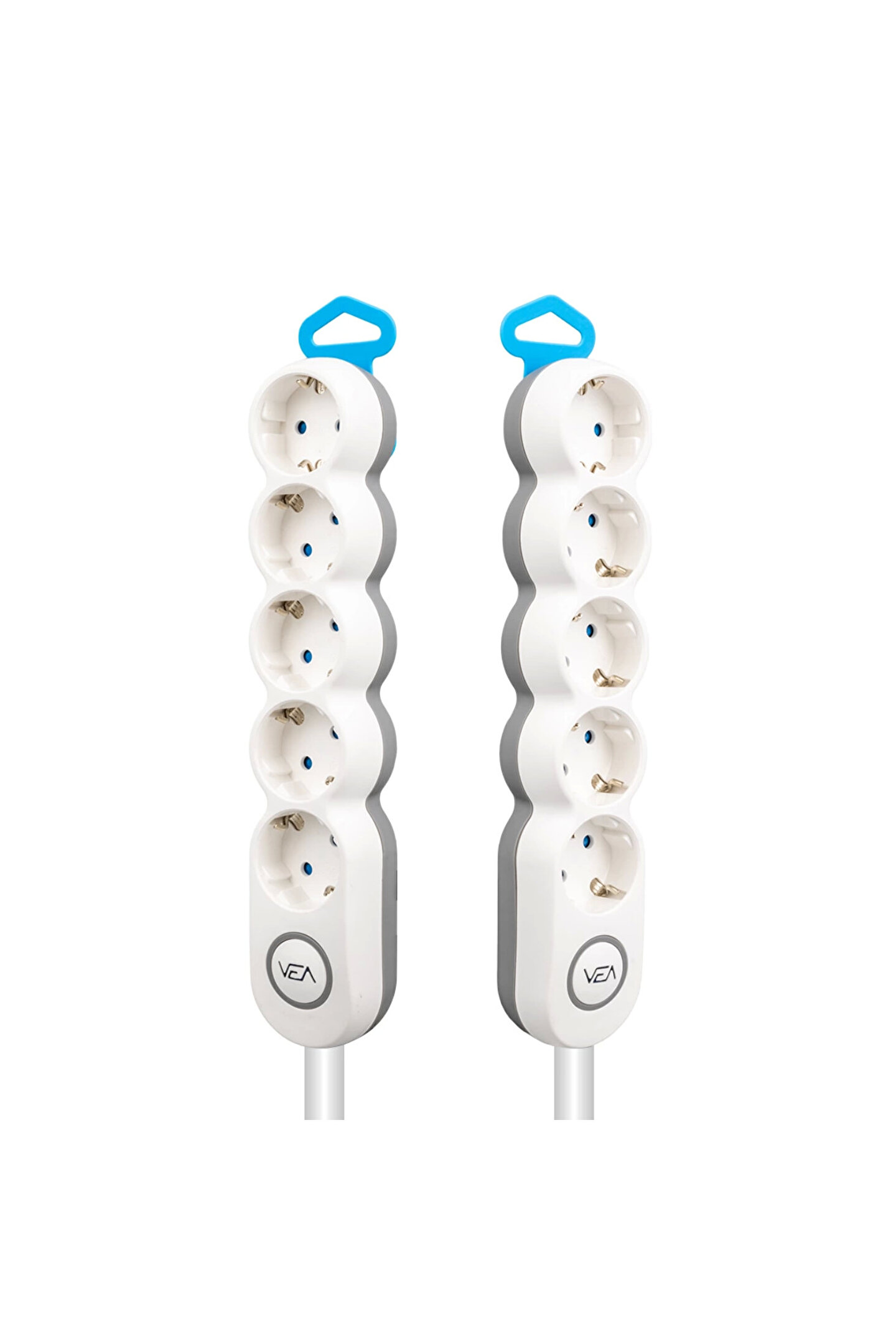 Vea Ve-2s5s 5li 1,5 Metre Kablolu Anahtarlı Beyaz Akım Korumalı Grup Priz