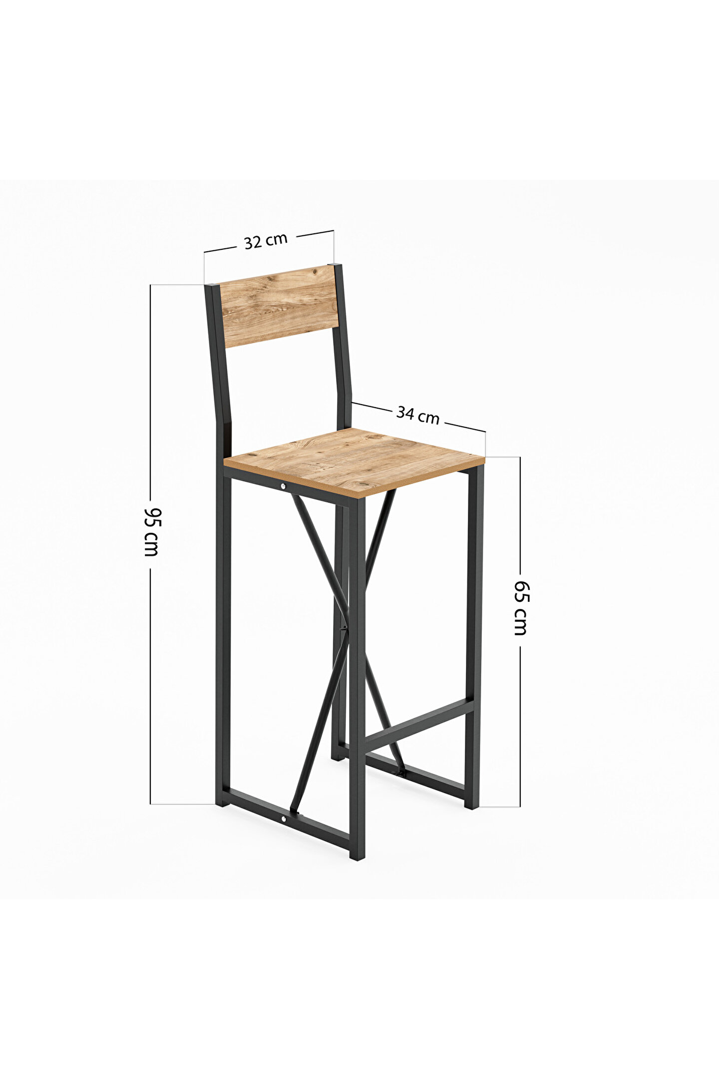 Sandalyenin oturma yüksekliği 65 cm’dir.