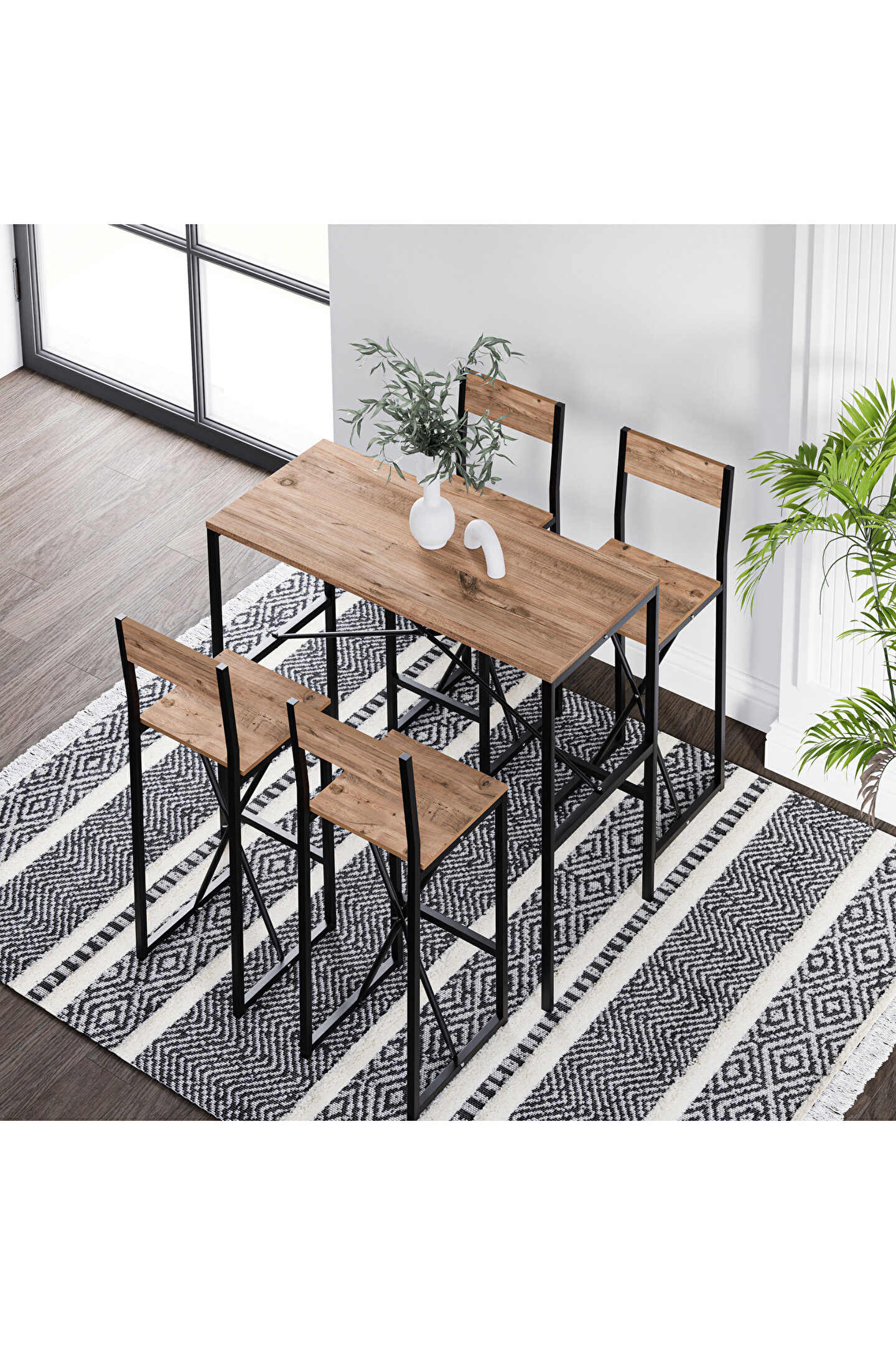 4 Kişilik Gzl Bar Masa Bar Sandalye Yemek Masa Sandalye Takımı Çam 1583, evlerin ve işletmelerin vazgeçilmez mobilya parçalarından biridir. Sağlam ve dayanıklı yapısı ile öne çıkan masa takımı, uzun seneler boyunca kullanılabilir. Şık ve benzersiz tasarımı sayesinde iç mekanların görünümünü güzelleştirir. Her türlü dekorasyon stili ile uyumlu bir masa takımıdır.