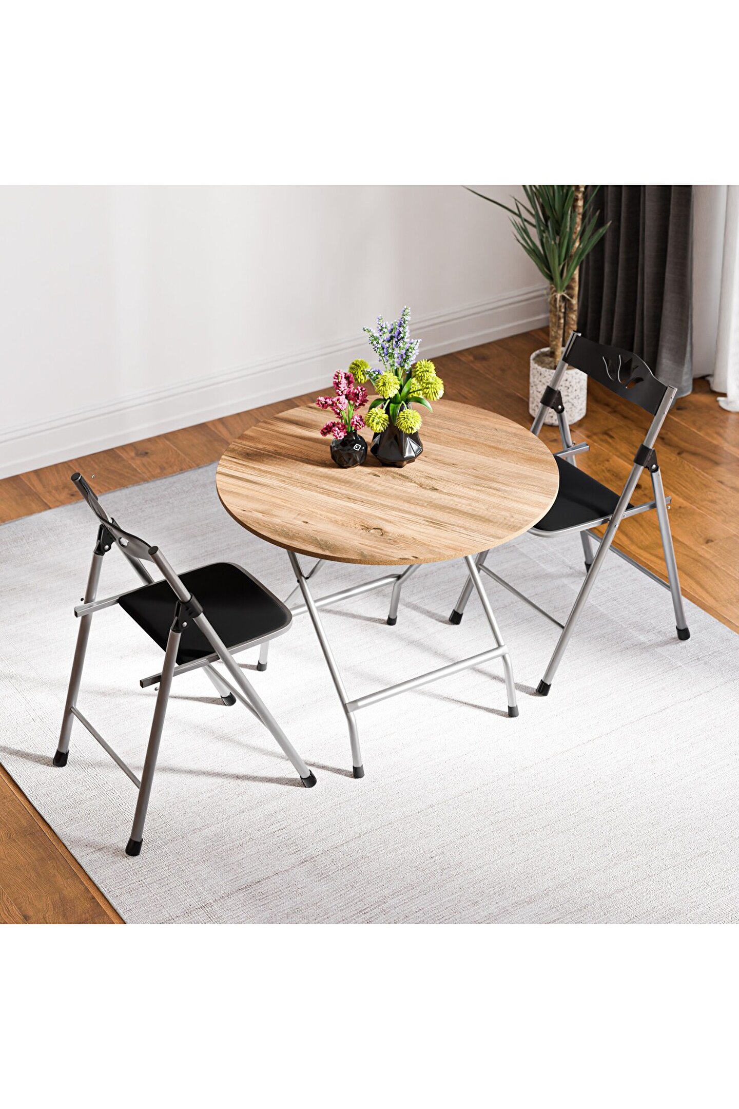 eportatif Atlantik Çam Katlanır Masa ve 2 Adet Sandalye Seti 1456