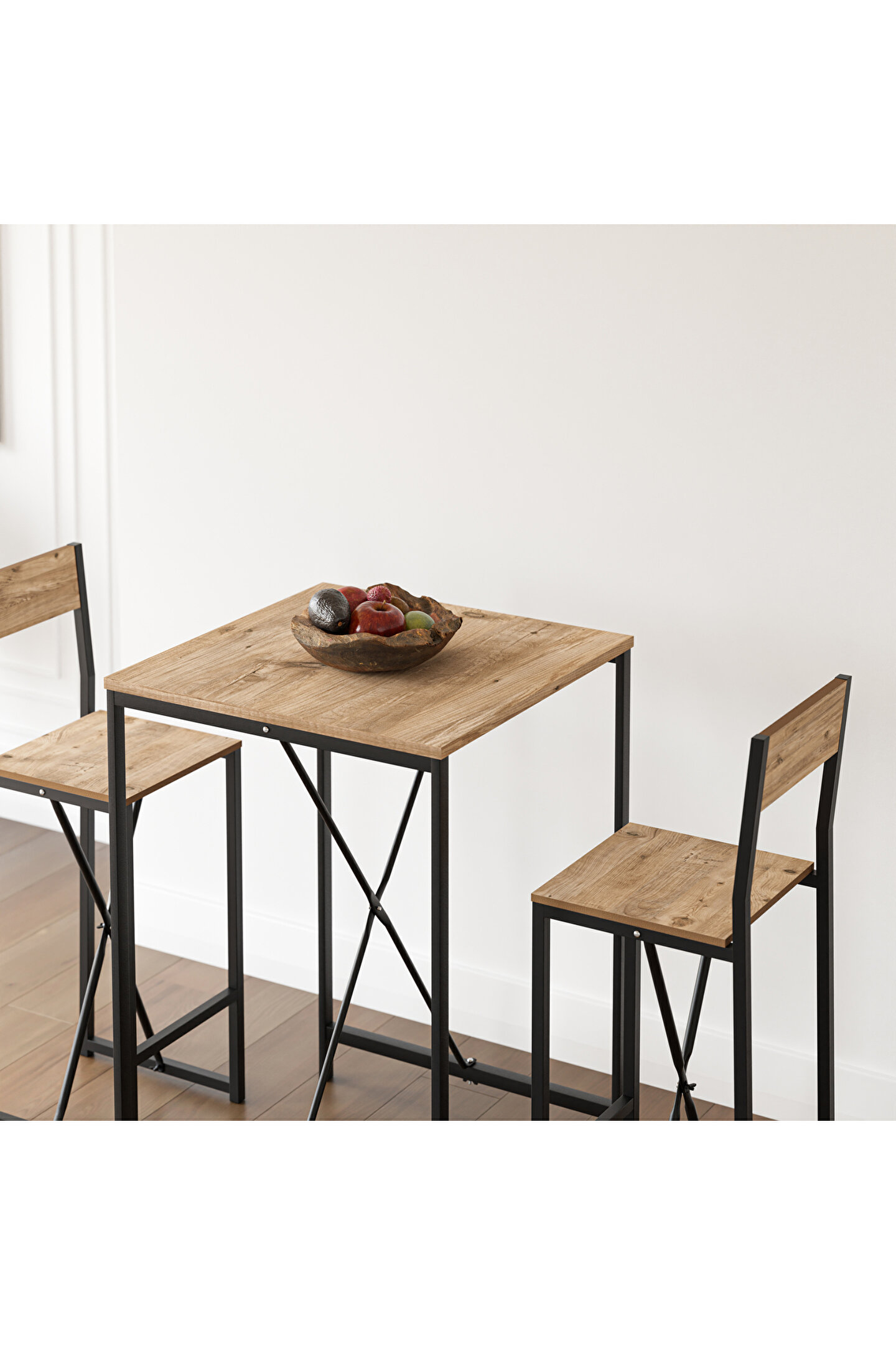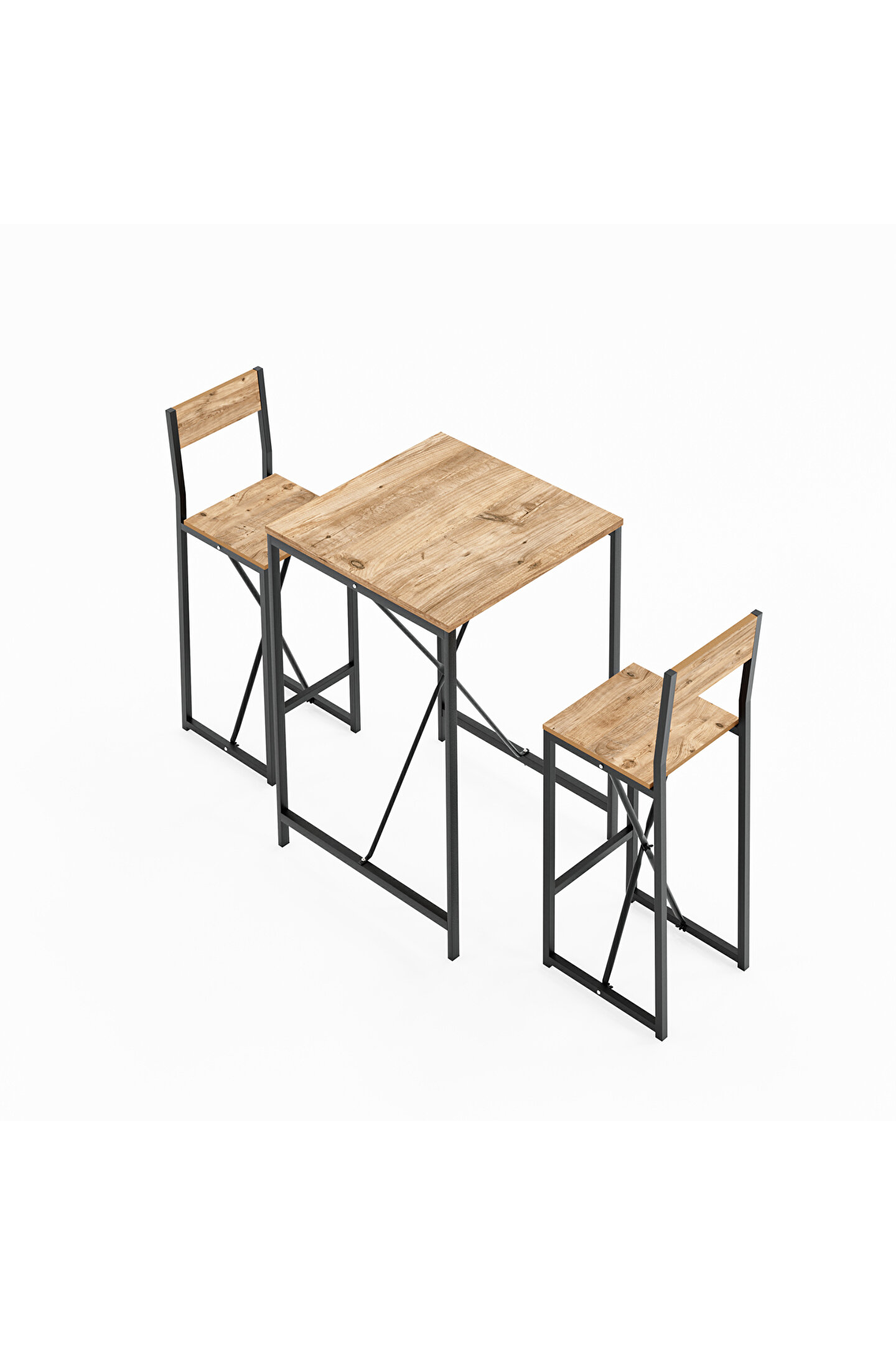 Bar Masa Sandalye Seti Mutfak Yemek Masa Takımı, evlerin ve işletmelerin vazgeçilmez mobilya parçalarından biridir.; Sağlam ve dayanıklı yapısı ile öne çıkan masa takımı, uzun seneler boyunca kullanılabilir.; Şık ve benzersiz tasarımı sayesinde iç mekanların görünümünü güzelleştirir.; Her türlü dekorasyon stili ile uyumlu bir masa takımıdır.; Bar Masa Sandalye Seti Mutfak Yemek Masa Takımı Nedir? İkili bar masa sandalye takımı, evlerde sıklıkla kullanılan takımlar arasında yer alır.; Mutfaklar için çok uygun bir seçim olan ürün, isteğe göre salon, oturma odası, balkon ya da başka herhangi bir alanda da tercih edilebilir.; Çok yönlü yapısı sayesinde işletmelerinde bir numaralı tercihi haline gelir.; İşletmelerde kullanıldığında alanın şık bir şekilde dekore edilmesine izin verir.; Diğer yandan da müşterilere rahat ve konforlu bir oturma deneyimi sağlar.; Bu yüzden de işletme dekorasyonunda önemli rol oynayan mobil parçaları arasında yer almayı başarır.; İkili mutfak masası, bar sandalyelerine uyum sağlayacak şekilde dizayn edilmiştir.; Mutfakların daha modern bir şekilde görünmesini sağlayan ürün, kahvaltı, öğle ve akşam yemeklerinde rahatlıkla zaman geçirmenizi sağlar.; Aileler için de çok uygun olan set, her türlü mutfakta kullanılabilir.; Aynı şekilde ürünü farklı yerlerde de kullanmak mümkün olabilecektir.; Sağlam ve dayanıklı bir yapıya sahip olan masa seti, yüksek ağırlık taşıma kapasitesine sahiptir.; Bar Masa Sandalye Seti Mutfak Yemek Masa Takımı Özellikleri Nelerdir? Bar sandalye masa seti, kendine özel nitelikleri ile bir adım öne çıkar ve bu özellikler sayesinde ihtiyaçları optimal anlamda karşılar.; Masa setinin dikkat çeken özellikleri şunları kapsar: Masanın tabla ebadı 60 cm x 60 cm’dir.; Masanın yüksekliği 90 cm’dir.; Sandalyenin oturma yüksekliği 65 cm’dir.; Sandalyenin sırt yüksekliği 95 cm’dir.; Sandalyenin oturma alanı ebadı34 cm’dir.; Sağlam ve dayanıklı malzemeler kullanılarak imal edilmiştir.; Ürünün hammaddesi metal profil ve sunta lam tabla içermektedir.; ; Dış mekanlara uygun değildir.; Bar Masa Sandalye Seti Mutfak Yemek Masa Takımı Hangi Avantajları Sunar? Bar sandalyeli masa takımı, eşsiz tasarımı ve güçlü yapısı ile farkını ortaya koymayı başarır.; Kaliteli ve sağlam malzemeler kullanılarak imal edilen ürün, uzun seneler boyunca evinizde ya da işletmenizde kullanılabilir.; Özellikle de mutfaklar için çok ideal bir seçim olan set, mutfakların dekorasyonunu anında tamamlar ve mutfaklarda kullanışlı ve şık bir alan yaratmayı mümkün kılar.; Mutfağınızı dekore etmek ve çok daha özgün bir görüntü elde etmek istediğinizde mutfak yemek masası ikili set doğru bir seçenek olarak karşınıza çıkar.; Küçük aileler için biçilmiş kaftan olan ikili set, iki kişinin rahatlıkla yemek yeme, sohbet etme, kahvaltı yapma etkinliğinde kullanılabilir.; İşlevsel bir ürün olmasının yanı sıra trend görünümü ile de dikkat çeken ürün, modern bir mutfak alanı oluşturmak istediğiniz zaman tam da ihtiyaçlarınıza hitap eder.; Bar sandalyeli ikili masa takımı, evler için olduğu kadar işletmeler için de uygun bir mobilya unsurudur.; Kaliteli ve güvenli yapısı sayesinde ihtiyaçları hemen karşılayan set, işletmelerin çok daha modern bir dekorasyon stiline sahip olmalarına yardımcı olur.; Müşteriler bu ikili masa takımı sayesinde konforlu bir deneyim elde ederler.; Ürün, uzun saatler boyunca kullanmak için çok uygundur.; Yüksek taşıma kapasitesi ile de ek bir avantaj yaratır.; İkili bar masa sandalye takımı, demonte bir şekilde gönderilir.; Ancak kurulumu bir hayli basittir ve herkes bu ürünü kolay ve pratik bir şekilde kurup, hemen kullanmaya başlayabilir.