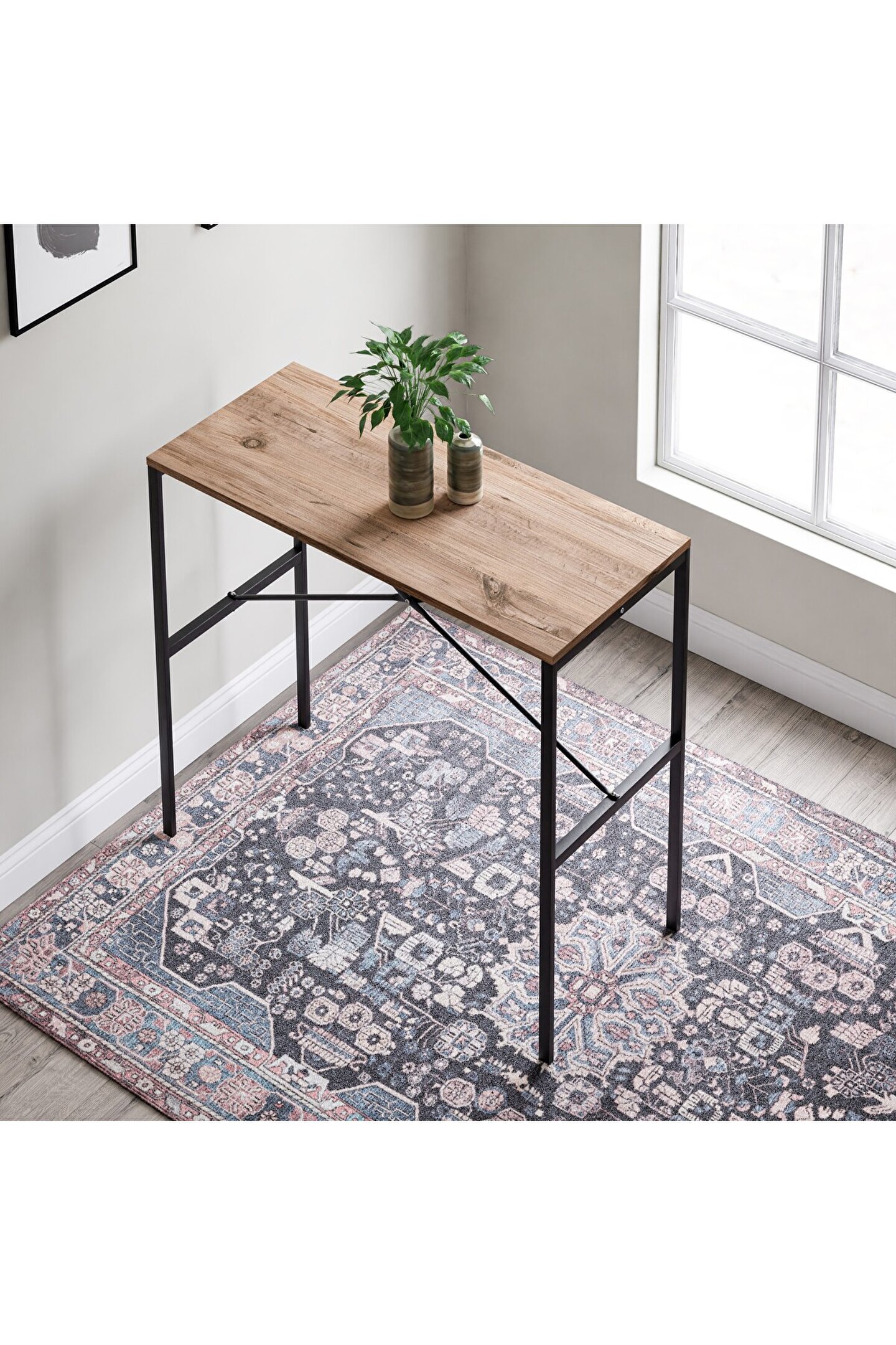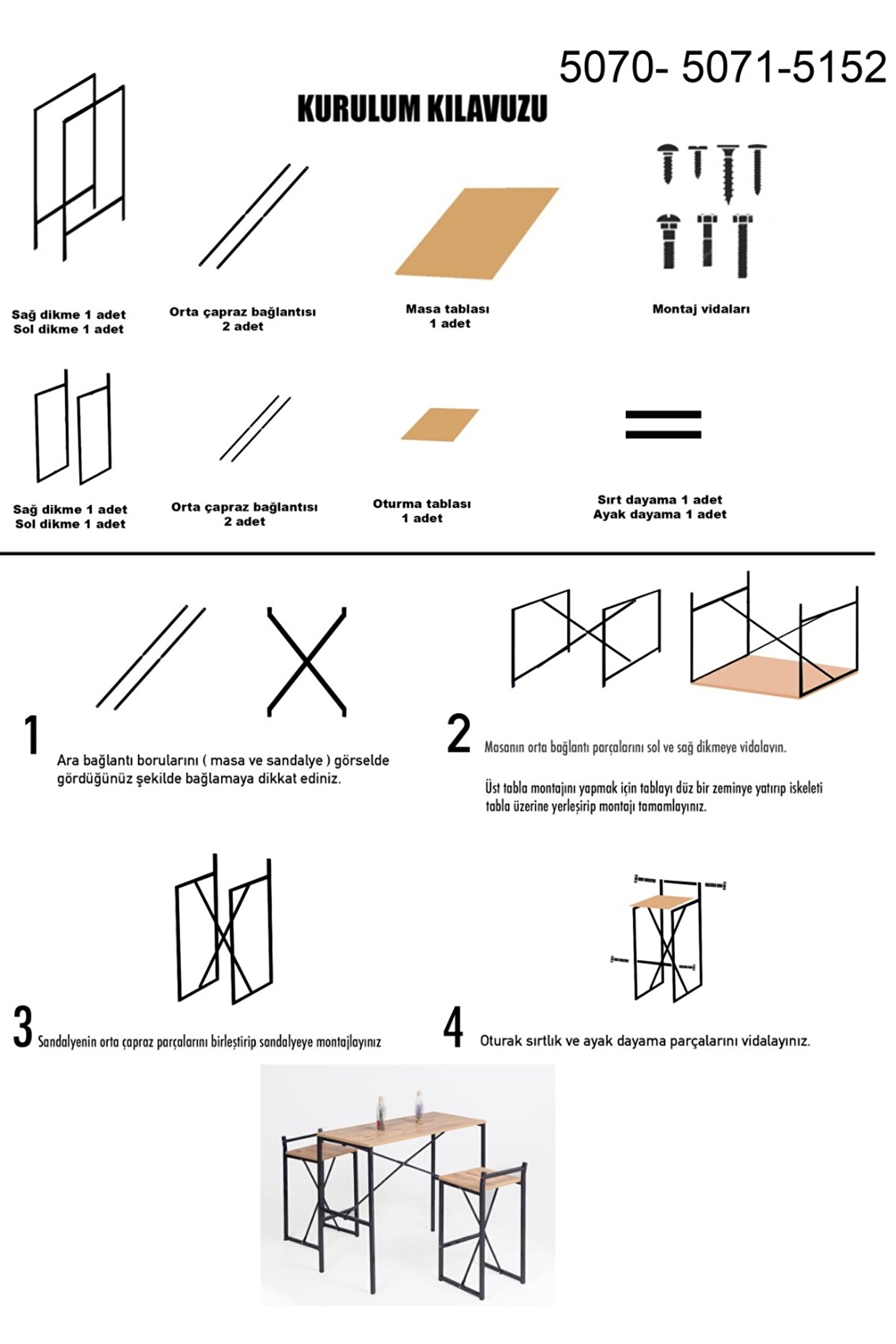 Masif ahşap yemek masasının tabla ebatları, 45 cm genişlik ve 100 cm uzunluk ölçüleriyle tasarlanır.; Bu ölçüler, masanın kullanım alanına uygun kompakt bir boyut sunarak pratik bir kullanım imkanı sağlar.; 92 cm yüksekliği, ergonomik bir tasarım sunarak konforlu kullanım imkanı tanır.; Bu ideal yükseklik, masayı çeşitli oturma düzenleriyle uyumlu hale getirir ve sizlere rahat bir yemek alanı sunar.; Malzemesi metal profil ve mdf tabladan oluşur.; Bu kombinasyon, dayanıklı metal yapı ile sağlamlığı artırırken, sunta lam tabla da hafiflik ve estetik açıdan çeşitli tasarım imkanları oluşturur.; Yemek masası dikdörtgen şekilde tasarlanır, bu da masanın kullanım alanında pratik bir yerleşim sağlar ve çeşitli dekorasyon tarzlarına uyum gösterir.; Dikdörtgen form, sizlerin masayı geniş bir yelpazede farklı oturma düzenleri ve mekan düzenlemeleriyle kullanmanıza imkan verir.; Bar ve bistro gibi işletmelerde yaygın olarak tercih edilen bir tasarım sunar.; Dayanıklılığı, estetik görünümü ve dikdörtgen formu, bu tür mekanlarda yoğun kullanıma uygun bir çözüm yaratır.; Kolay silinebilir yüzeyi, günlük temizlik işlemlerini pratikleştirir ve masanın bakımını kolaylaştırır.; Bu özellik, leke direnci ve temizlik kolaylığı sunarak masanın uzun süre temiz ve şık kalmasına yardımcı olur.; Hafif ve portatif bir tasarıma sahiptir, bu da taşıma ve yer değiştirme işlemlerini kolaylaştırır.; Bu özellik, masayı farklı mekanlarda rahatlıkla kullanabilme ve ihtiyaca göre yer değiştirebilme avantajı sağlar.;