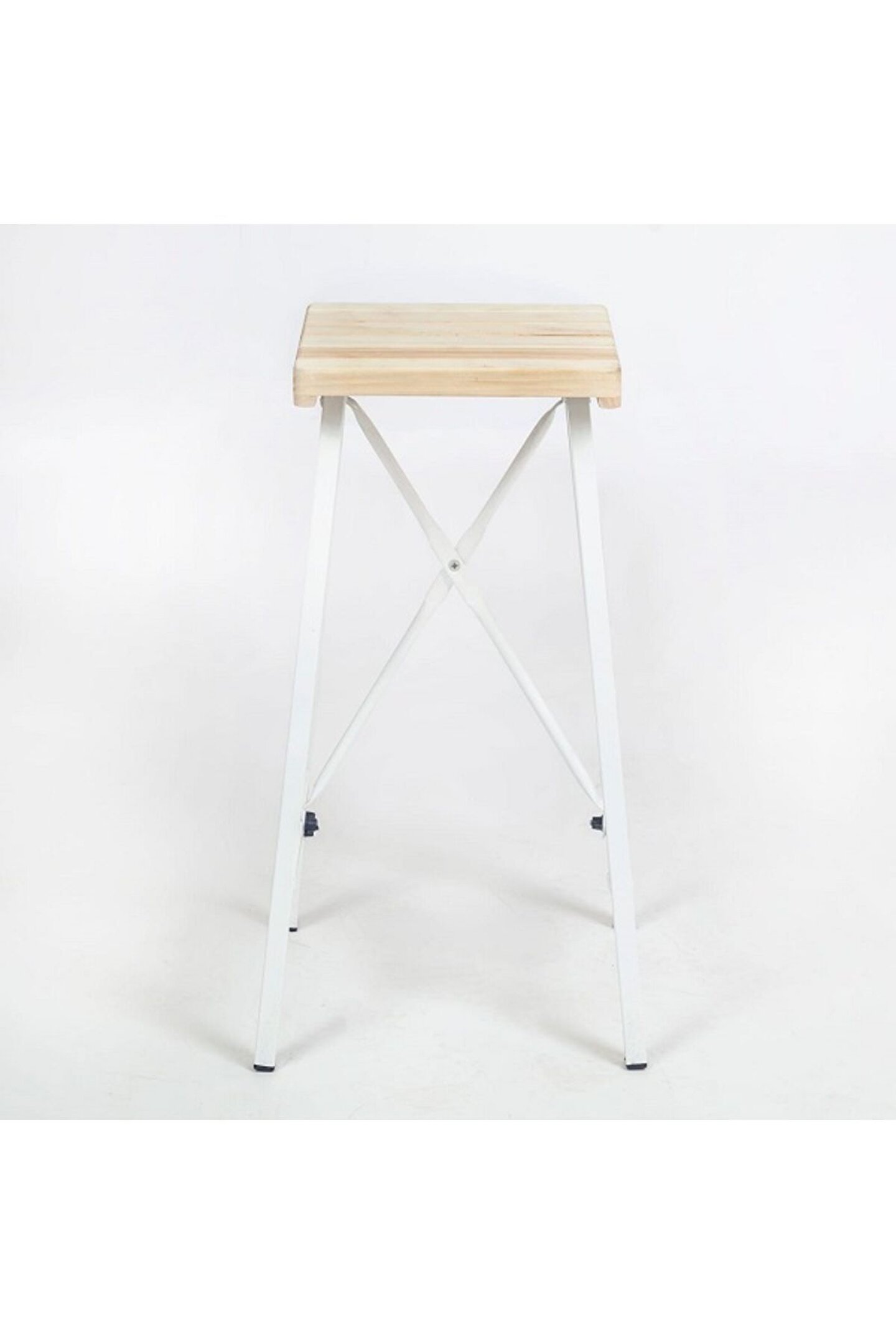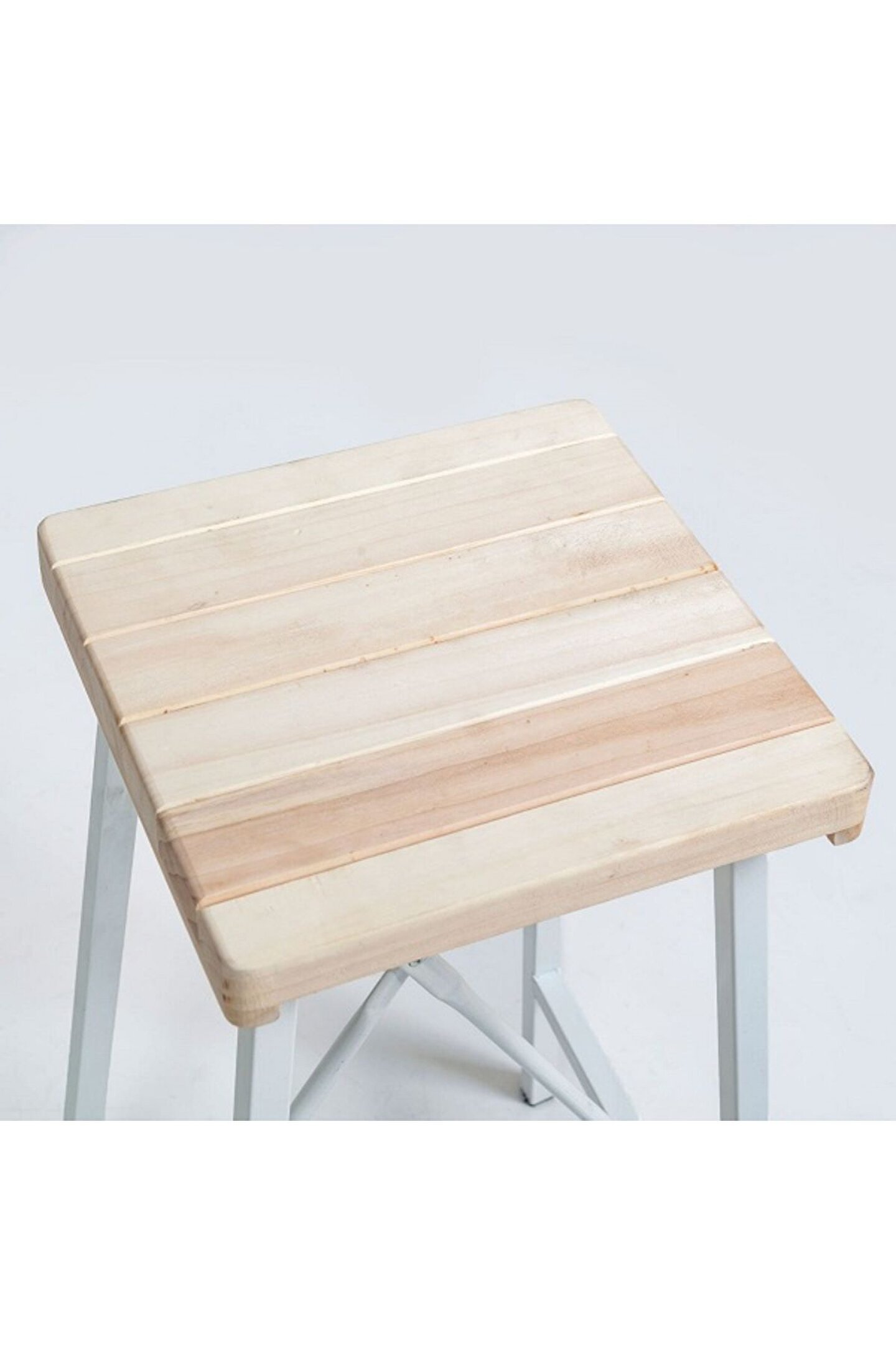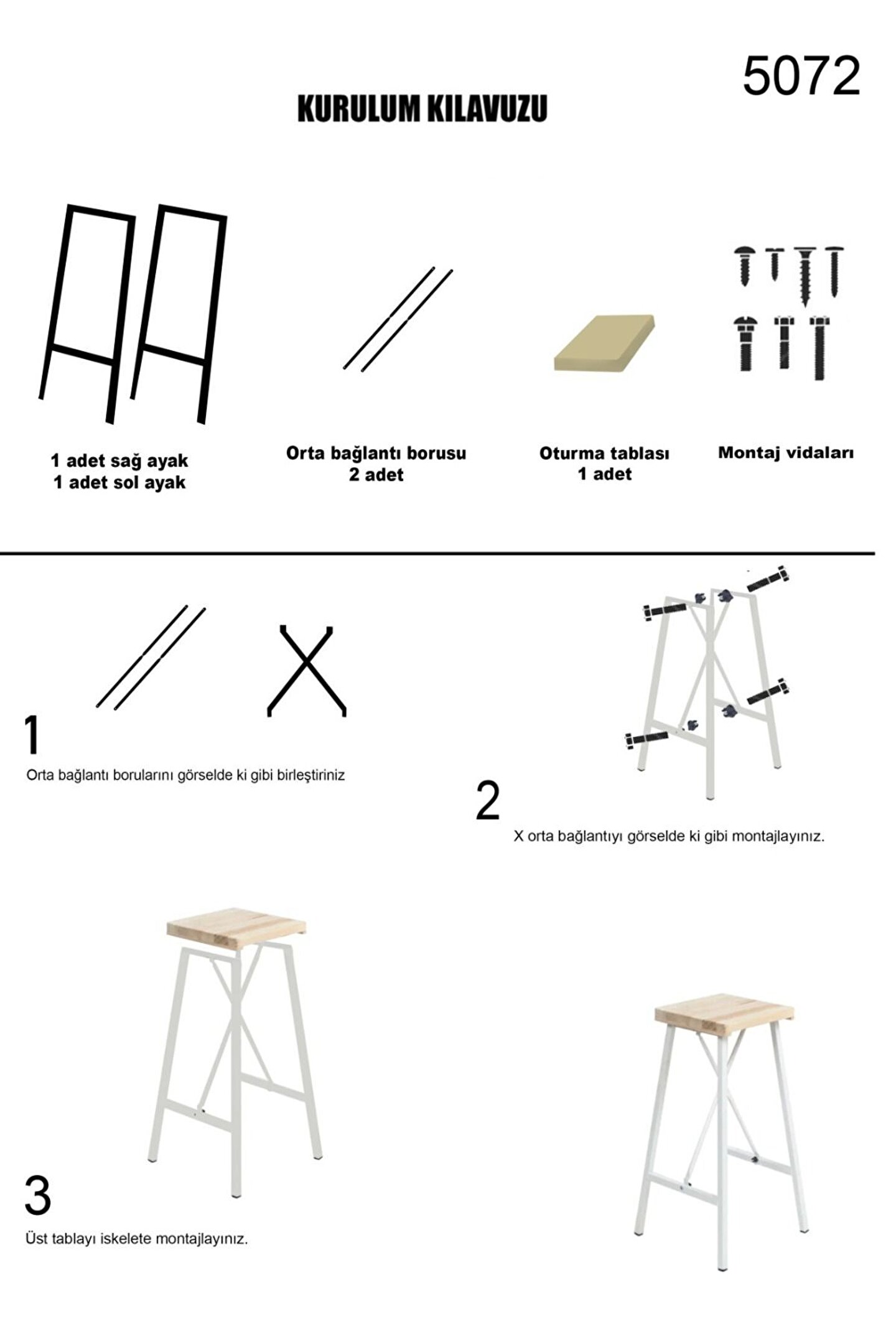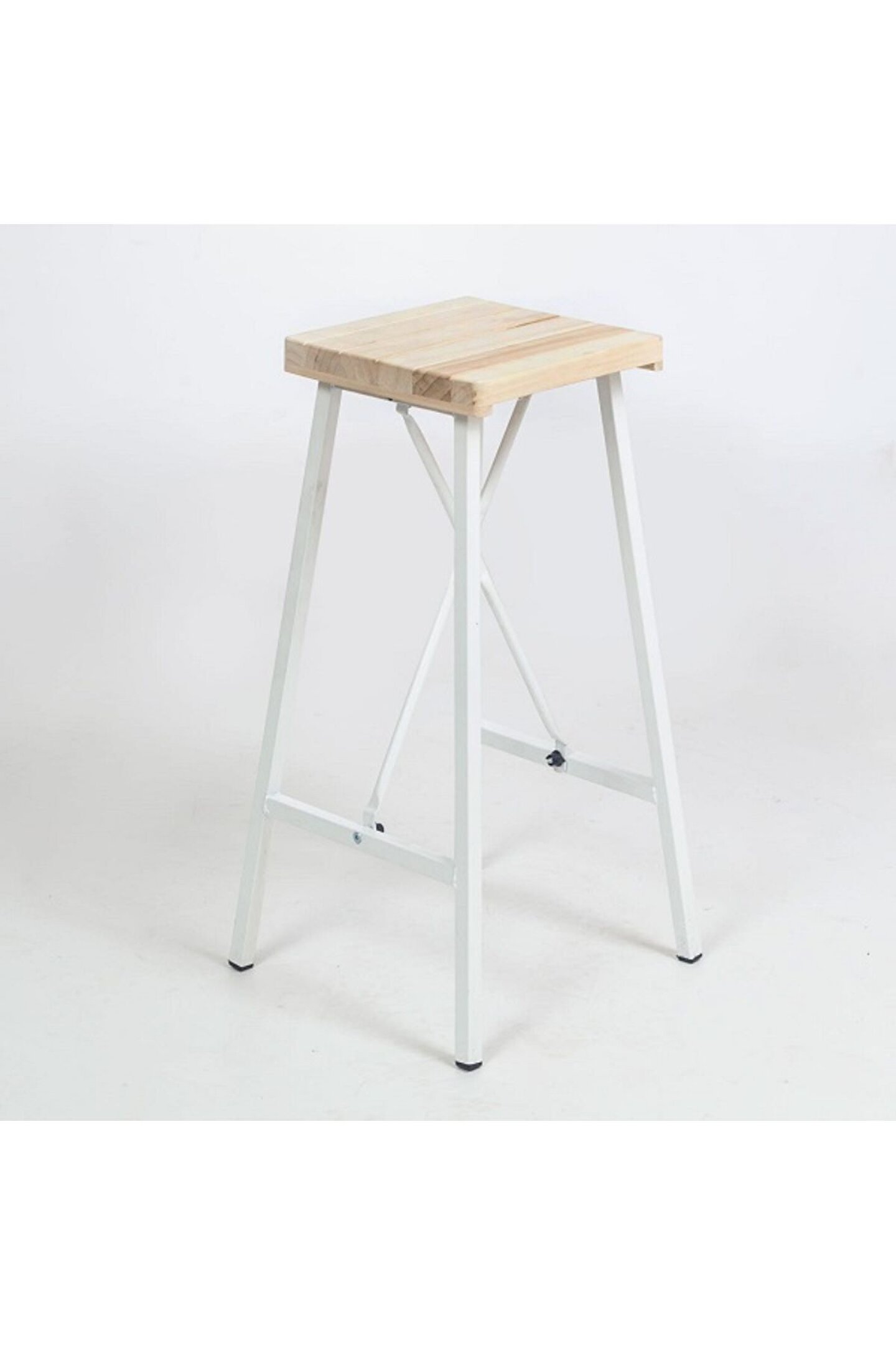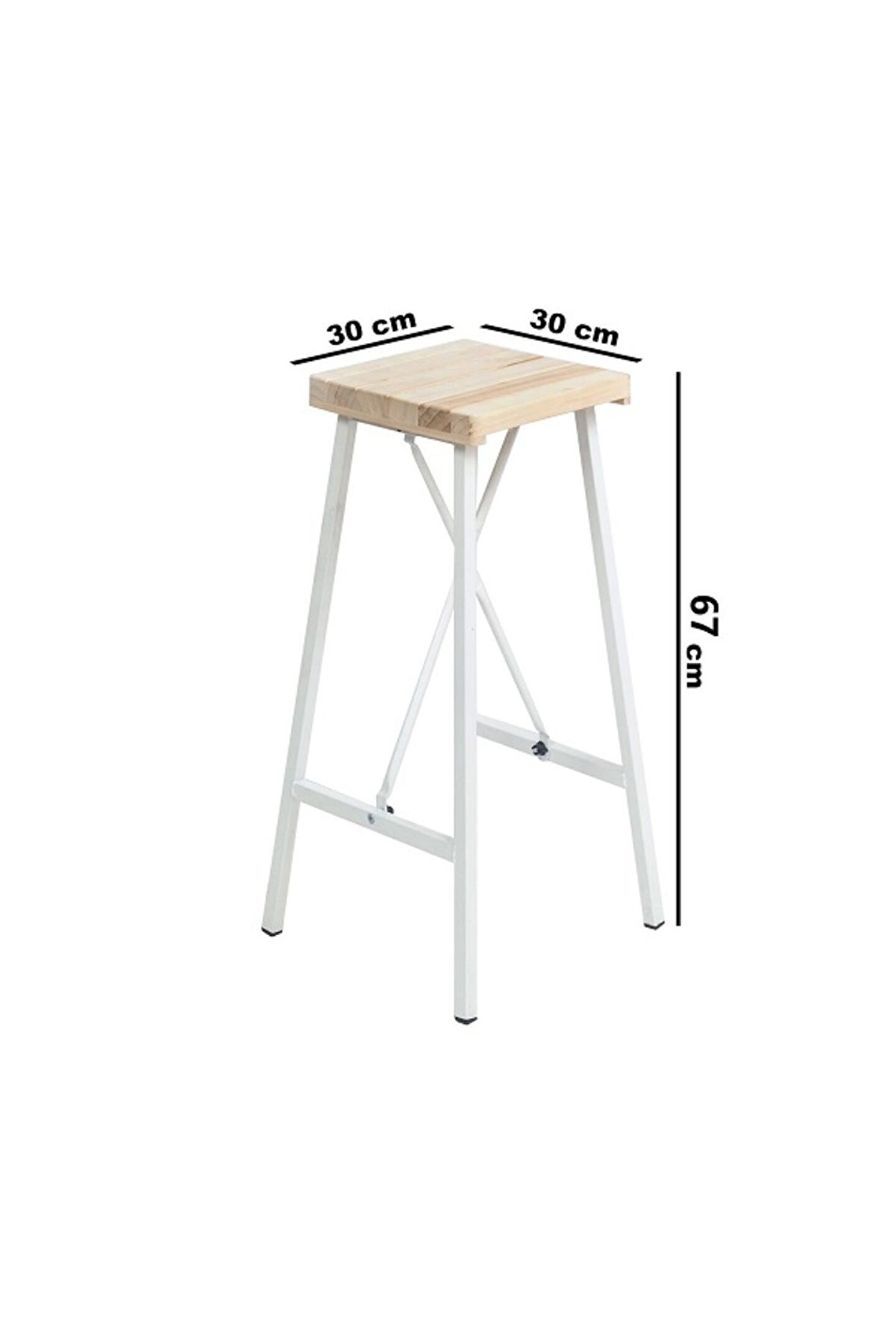 Beyaz metal profilli bar sandalyesi Yükseklik: 67 cm Oturma alanı: 30 cm x 30 cm Ürün demonte gelmektedir, kurulumu basittir; Oturma alanı masif ahşaptır; Beyaz ayak kısımları metal profildir; Maks; kaldırma kapasitesi 120 kg'dır;