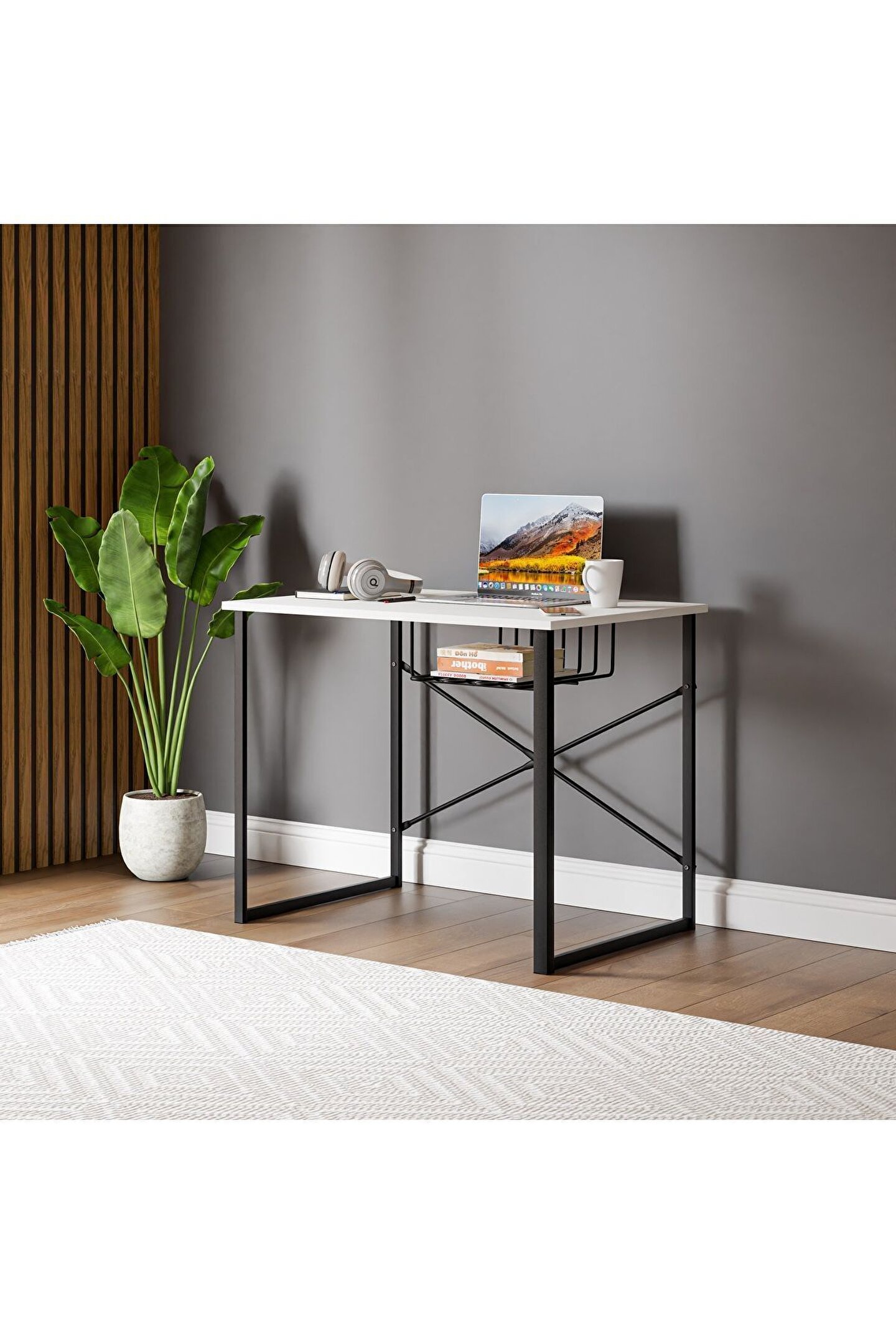 Dayanıklı metal malzeme kullanımı sayesinde uzun ömürlü ve sağlam bir yapı sunar; Beyaz renk seçeneğiyle modern ve şık bir görünüm sağlar, ofis veya çalışma odanızın dekorasyonuna kolayca uyum sağlar; Raflı tasarımı ile kitaplarınız, notlarınız ve diğer eşyalarınız için ekstra depolama alanı sunar, çalışma alanınızı düzenli tutar; Geniş yüzeyi sayesinde laptopunuz için rahat bir çalışma alanı oluştururken, aynı zamanda ekstra raflarla diğer ihtiyaçlarınıza da cevap verir;
