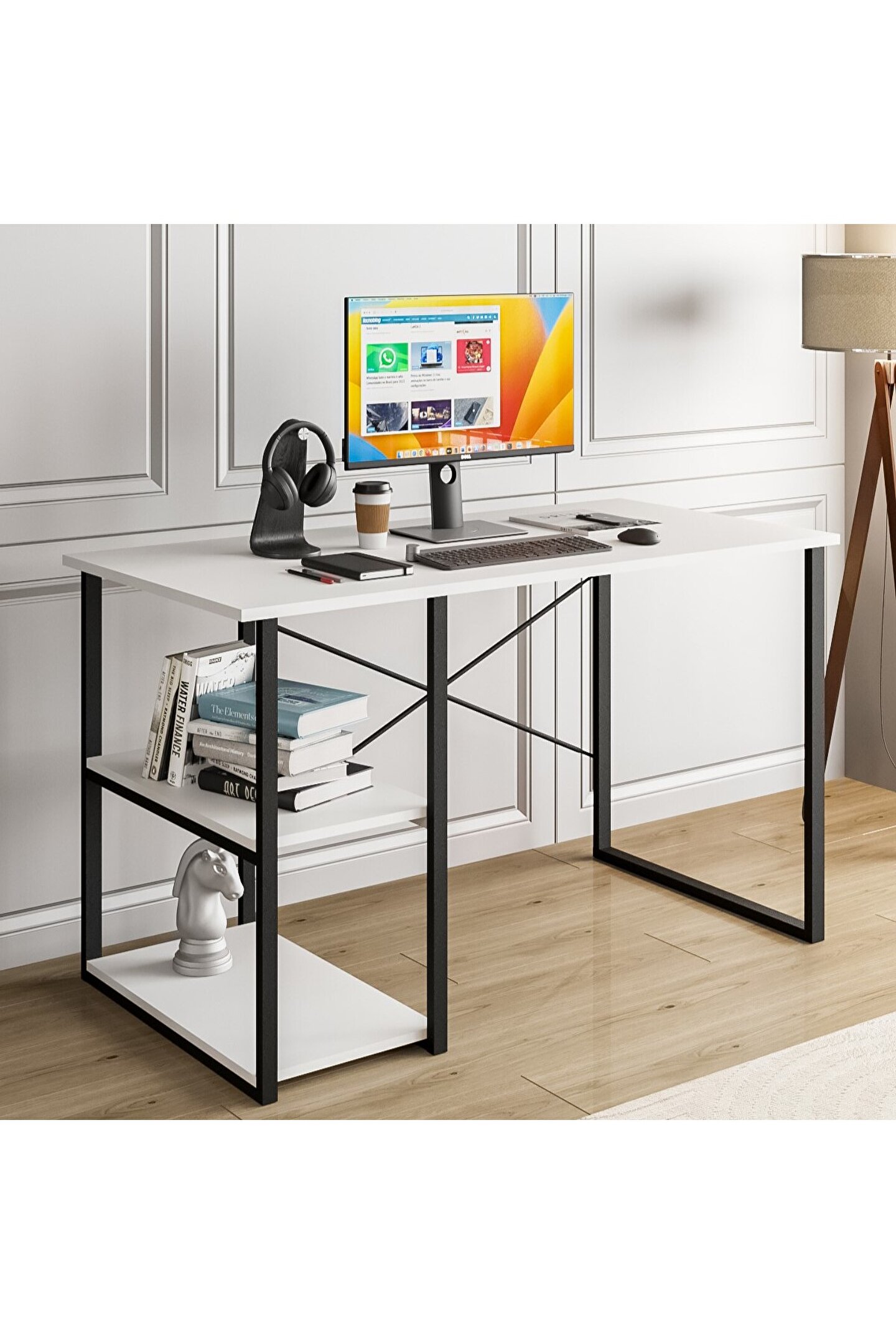 Suntalam malzemesi sayesinde dayanıklı ve uzun ömürlü kullanım sunar; Beyaz renk seçeneğiyle ofis ve çalışma alanlarınıza modern bir dokunuş katar; Raflı tasarımı, laptop ve diğer ofis malzemelerinizi düzenli bir şekilde saklamanızı sağlar; Geniş yüzeyi ile rahat çalışma alanı sunarak ergonomik bir kullanım deneyimi yaşatır;