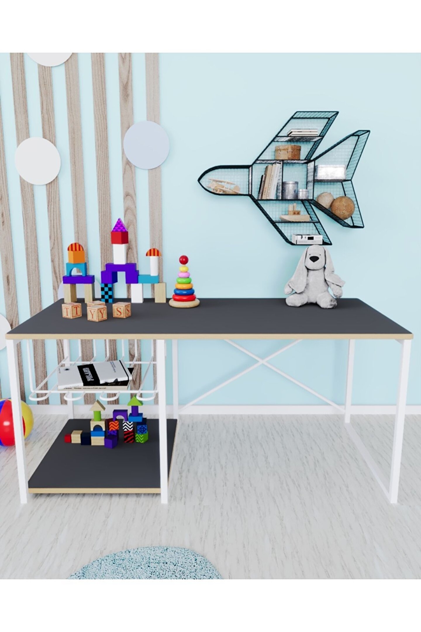 Çocuk Çalışma Masası Ve Sandalyesi Oyun Etkinlik Aktivite Masası Çocuklarınız ile birlikte çalışma yapabileceğiniz masa ve sandalye takımı. ; Malzeme: 12 mm 1. Kalite MDF ve 15*15 metal profil ayaklar. ; Paket içeriği: 1 adet masa 2 Adet sandalye, 1 adet tel raf. ; Masa ölçüleri: yükseklik: 40 cm, uzunluk: 90 cm, genişlik: 45 cm Sandalye ölçüleri: oturma alanı yüksekliği 28 cm, uzunluk 27 cm, genişlik: 24 cm, yerden sırt yüksekliği 50 cm .MDF yapısı, metal ayaklar sayesinde uzun yıllar kullanım sağlar. ; Ayakların altında bulunan plastik pabuçlar sayesinde zemine zarar vermez. ;
