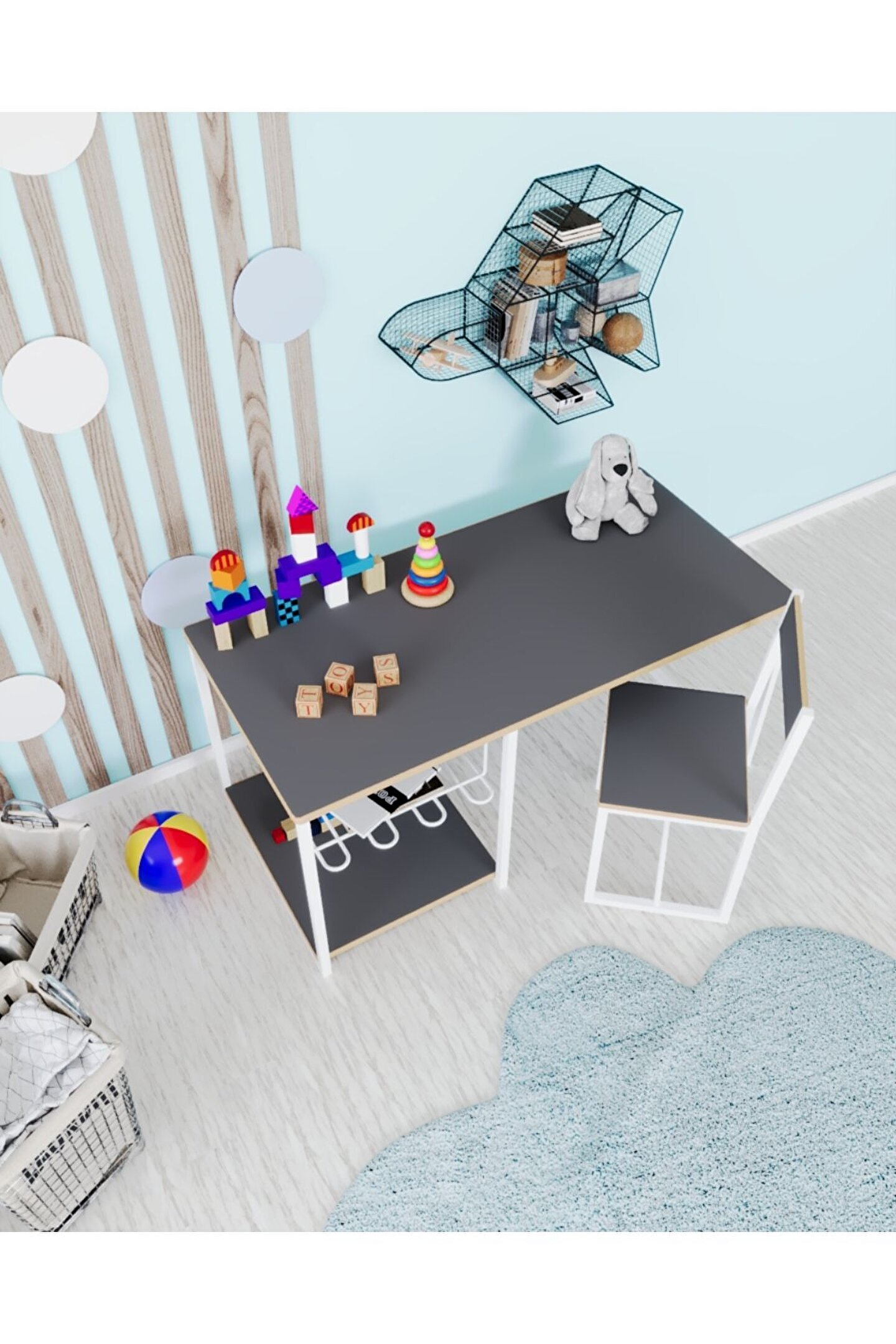Çocuk Çalışma Masası Ve Sandalyesi Oyun Etkinlik Aktivite Masası Çocuklarınız ile birlikte çalışma yapabileceğiniz masa ve sandalye takımı. ; Malzeme: 12 mm 1. Kalite MDF ve 15*15 metal profil ayaklar. ; Paket içeriği: 1 adet masa 1 Adet sandalye, 1 adet tel raf. ; Masa ölçüleri: yükseklik: 40 cm, uzunluk: 90 cm, genişlik: 45 cm Sandalye ölçüleri: oturma alanı yüksekliği 28 cm, uzunluk 27 cm, genişlik: 24 cm, yerden sırt yüksekliği 50 cm .MDF yapısı, metal ayaklar sayesinde uzun yıllar kullanım sağlar. ; Ayakların altında bulunan plastik pabuçlar sayesinde zemine zarar vermez. ;