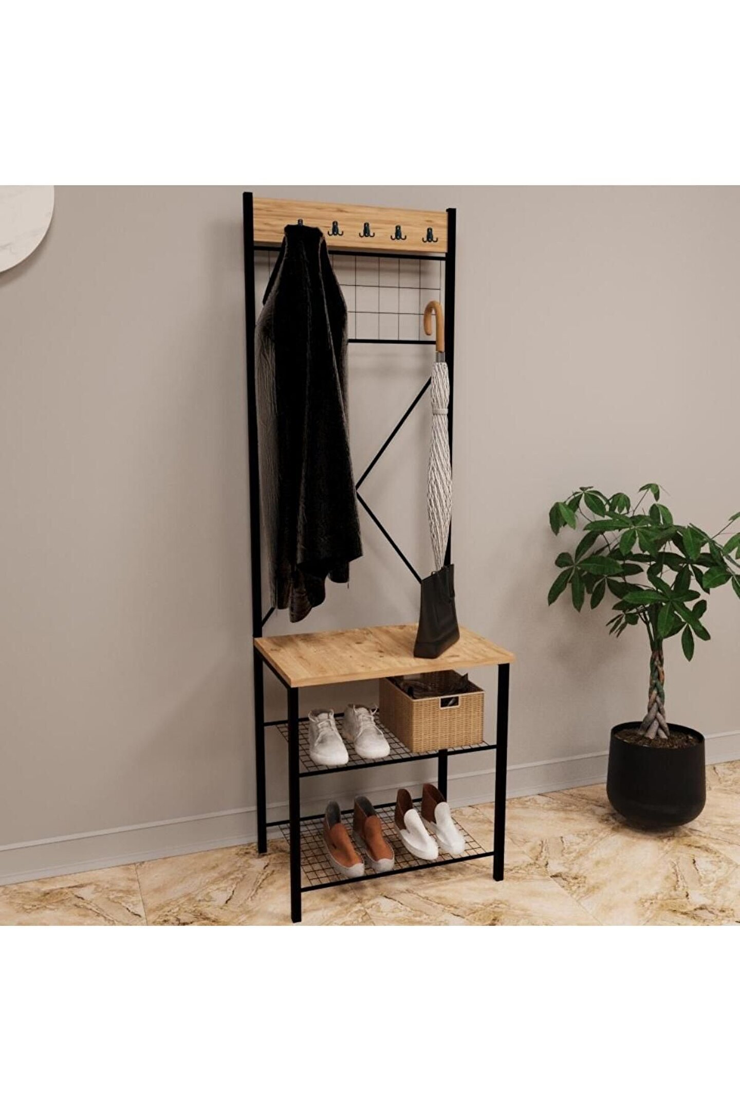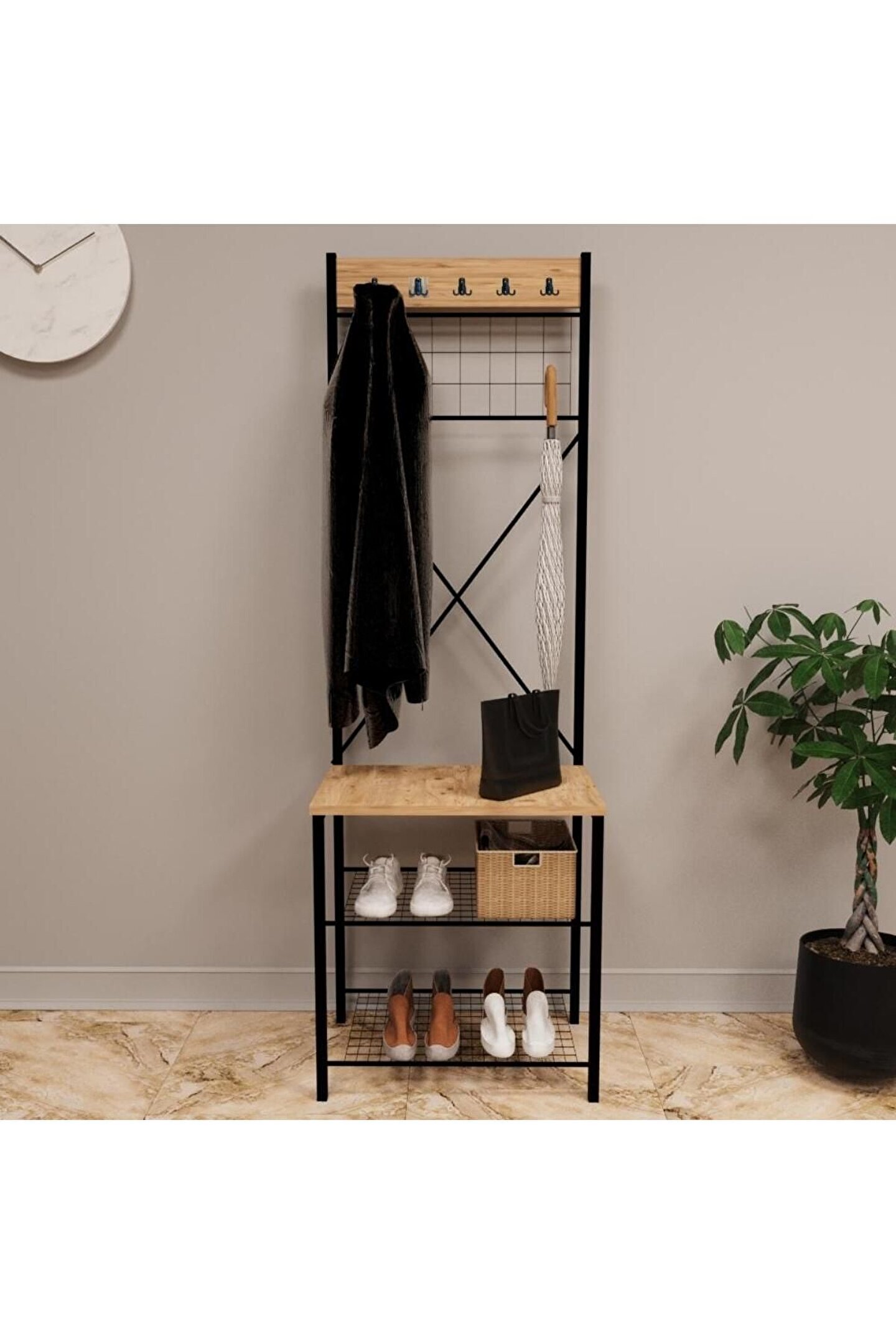 Ürün Ölçüleri: Ürün Genişliği: 60 Cm Ürün Derinliği: 30 Cm Ürün Ayakkabılık Kısım Yüksekliği: 60 Cm Ürün Raf Araları Yüksekliği: 25 Cm Ürün Sırt Yüksekliği: 170 Cm Ürün Özellikleri: Ürün ahşap kısımları 1,8mm kalınlığında suntalamden üretilmiştir . ; Metal kısımları elektrostatik boyalıdır demir malzemeden üretilmiştir, demonte olarak gönderim yapılacaktır. ; Görseldeki diğer ürünler aksesuar amaçlı kullanılmıştır ürün içinde gönderilmeyecektir. ; Giriş alanınızı düzenlemenin ve daha fazla depolama alanı yaratmanın en ideal yolu olan dar portmantoyu hemen satın alın! Daha düzenli ve düzenlemiş bir yaşam için şimdi harekete geçin!;