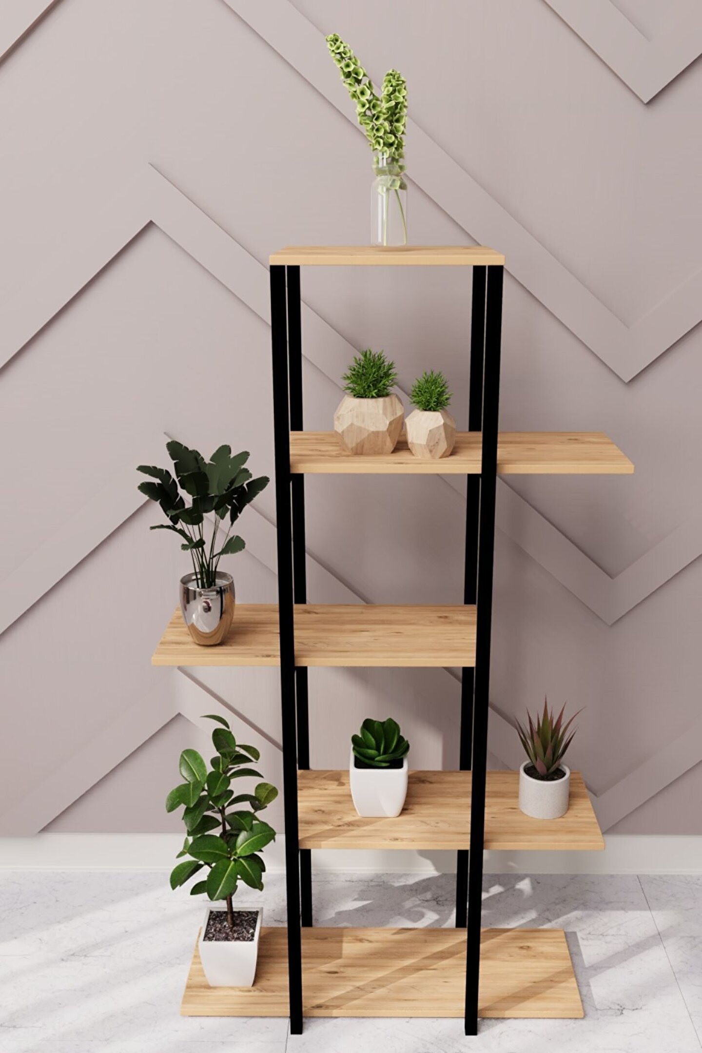Evinizin içinde, bahçenizde veya balkonunuzda kullanabileceğiniz Dekoratif Saksı, şık ve modern tasarımı ile bulunduğu alana farklı bir hava katmaktadır. ; Ürün iskeleti 20x20 profilden, raflar ise 18 mm 1.sınıf lam malzemeden imal edilmektedir. ; Ürün kanserojen madde içermediği için çevre dostudur. ; Ürün size demonte olarak gönderilecek olup, kurulum için gerekli aparatlar paket içerisinde yer almaktadır. ; Ürün görselinde kullanılan objeler dekorasyon amaçlı olup, paketli olarak gönderilmeyecektir. ; Ürün Özellikleri: Yükseklik 110 cm Alt raf genişliği 60 cm Derinlik 20 cm. ; Orta raflar 45 cmgenişliğinde ve 20 cm derinliğindedir. ; Üst raf 22 cm genişliğinde ve 25 cm derinliğindedir. ; Demir profil içerisinde raflar arası mesafe 25 cm'dir. ; MDF profildir oldukça kaliteli ve sağlamdır.;