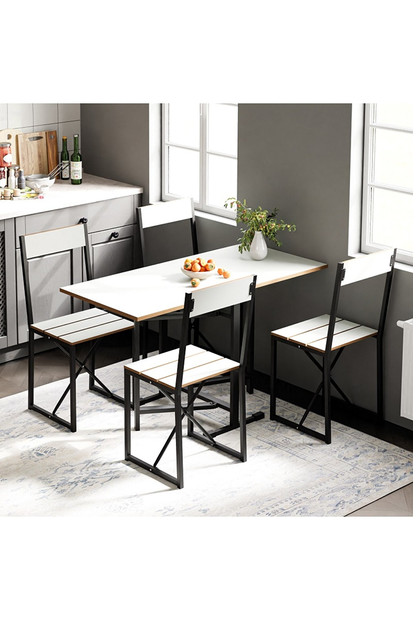 Katlanabilir tasarımı sayesinde, kullanılmadığı zamanlarda yer kaplamayan pratik bir çözüm sunar; Sandalyelerde kumaş kullanılmamış olup, kolay temizlenebilir ve dayanıklı bir yüzey sağlar; Modern tasarımı ile mutfak dekorasyonunuza şık ve çağdaş bir görünüm katar; 2 yıl garanti süresi ile satın alma sonrası güvenilir kullanım imkanı sunar; Beyaz renk seçeneği, mutfak dekorasyonunuza aydınlık ve ferah bir atmosfer kazandırır;