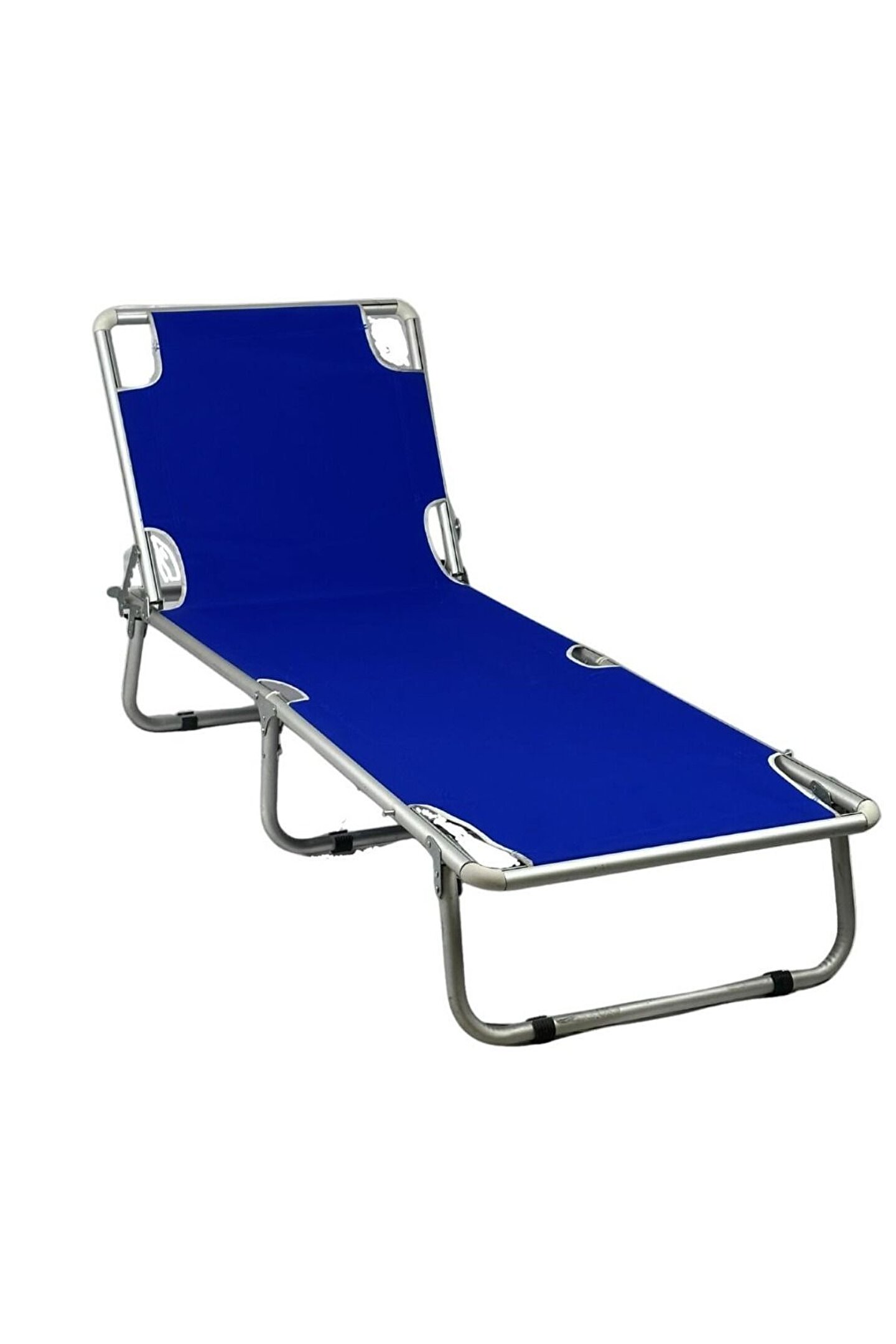 eportatif Katlanır Alüminyum Şezlong Kademeli Kamp Yatağı Mavi 1288