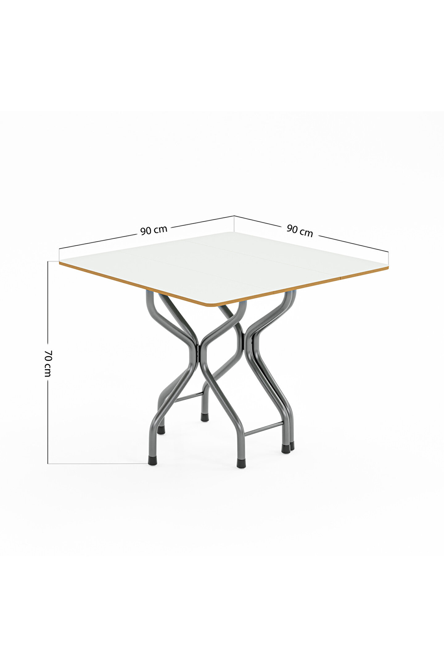 Kırma masa sandalye seti: Masa teknik bilgileri: 90 cm * 90 cm kare ölçülerdedir. ; Yerden yüksekliği 72 cm’dir. ; Elektrostatik boyalı Metal ayaklara sahiptir. ; Ahşap Beyaz Mermer Desenli Sunta lam. ; Katlanabilir iki ayrı kanada sahiptir. ; Sandalye: Mutfak Balkon Salon Gibi iç Mekanlarda Kullanılmak İçin Tasarlanmış Olup Şık Görünümü Sayesinde Bulunduğu Ortama Ayrı Bir Güzellik Katacaktır. ; Sandalyelerin Sırt ve Mafsalları Plastik Özelliktedir. ; Sandalyelerin Oturum yerleri süet kumaştan imal edilmiştir. ; Kapalı Ölçüleri:90*45*5 Oturma Yüksekliği: 45 cm;