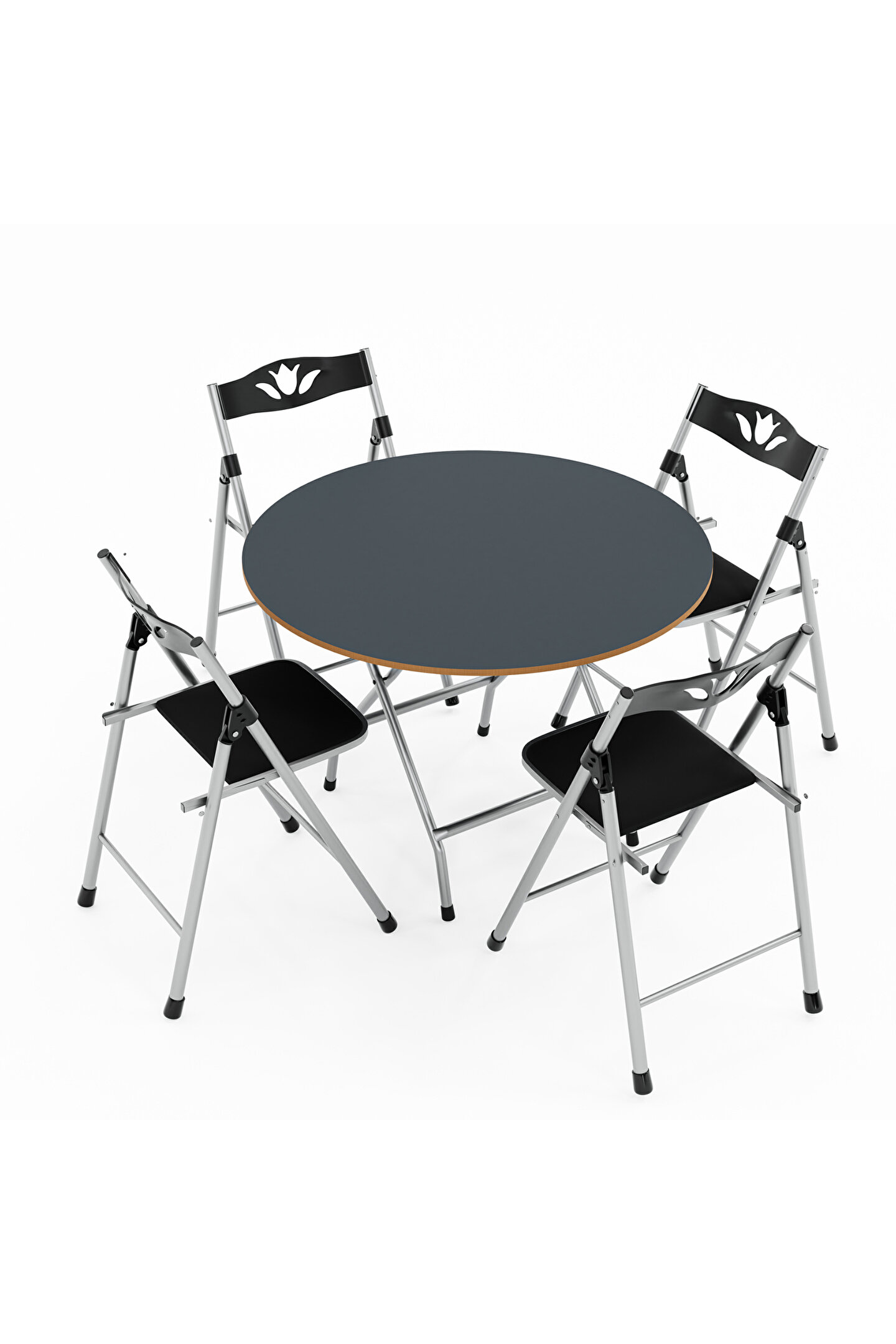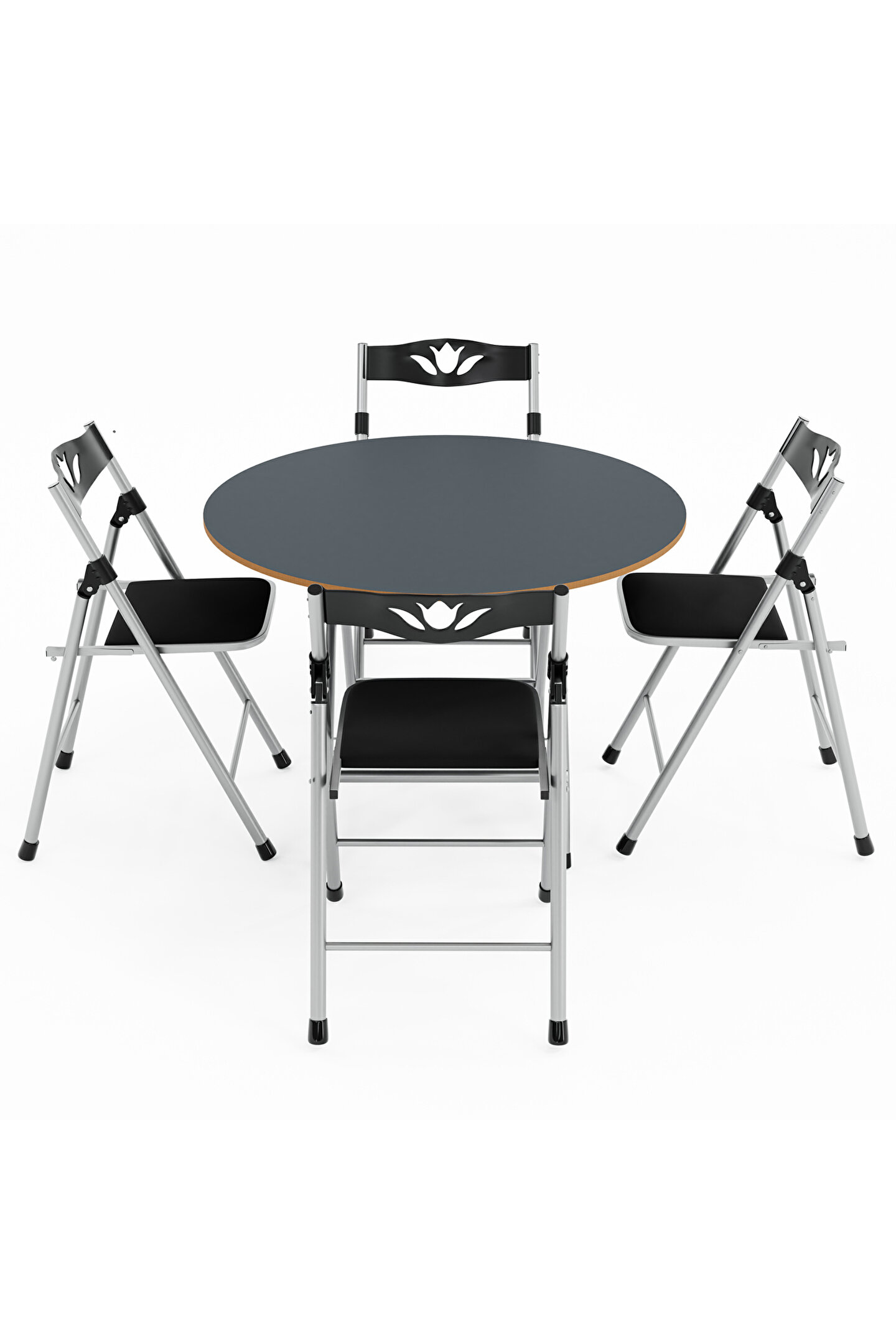 Günlük kullanım için tasarlanmış Katlanır Masa Yuvarlak Kırma Mutfak Masası Füme 1464 son derece fonksiyonel bir mobilya grubudur. Masa, 70 çapı bulunan geniş yüzeyi ile çok yönlü kullanımlar sunar. Bu sayede yemekler, çalışmalar veya her türlü sosyal etkinlik için ideal bir alan haline gelir. 70 cm'lik masa yüksekliği, ergonomik bir oturma ve kullanım konforu sağlar, kullanıcıların uzun süre masa başında rahat etmelerine olanak tanır. High gloss kaplama, kolay temizlenebilir özelliği ile bilinir; böylece leke ve kirler hızla silinebilir, masanın bakımı kolaylaşır. Bu malzeme aynı zamanda çizilmelere ve yıpranmalara karşı dayanıklıdır, uzun süreli kullanımlarda bile estetik görünümünü korur. Katlanabilir sandalyeler ise setin pratikliğini artıran bir başka özelliktir. Sandalyeler, kullanılmadığı zamanlarda az yer kaplamak üzere kolayca katlanabilir. Her sandalye, konforlu bir oturma deneyimi için süet kumaş kaplama ve sünger dolgu ile donatılmıştır. Bu özellikler, sandalyelerin sadece şık değil, aynı zamanda uzun oturumlarda bile rahat olmasını sağlar, böylece kullanıcılar yemeklerini veya sosyal etkinliklerini maksimum konforla tamamlayabilir.