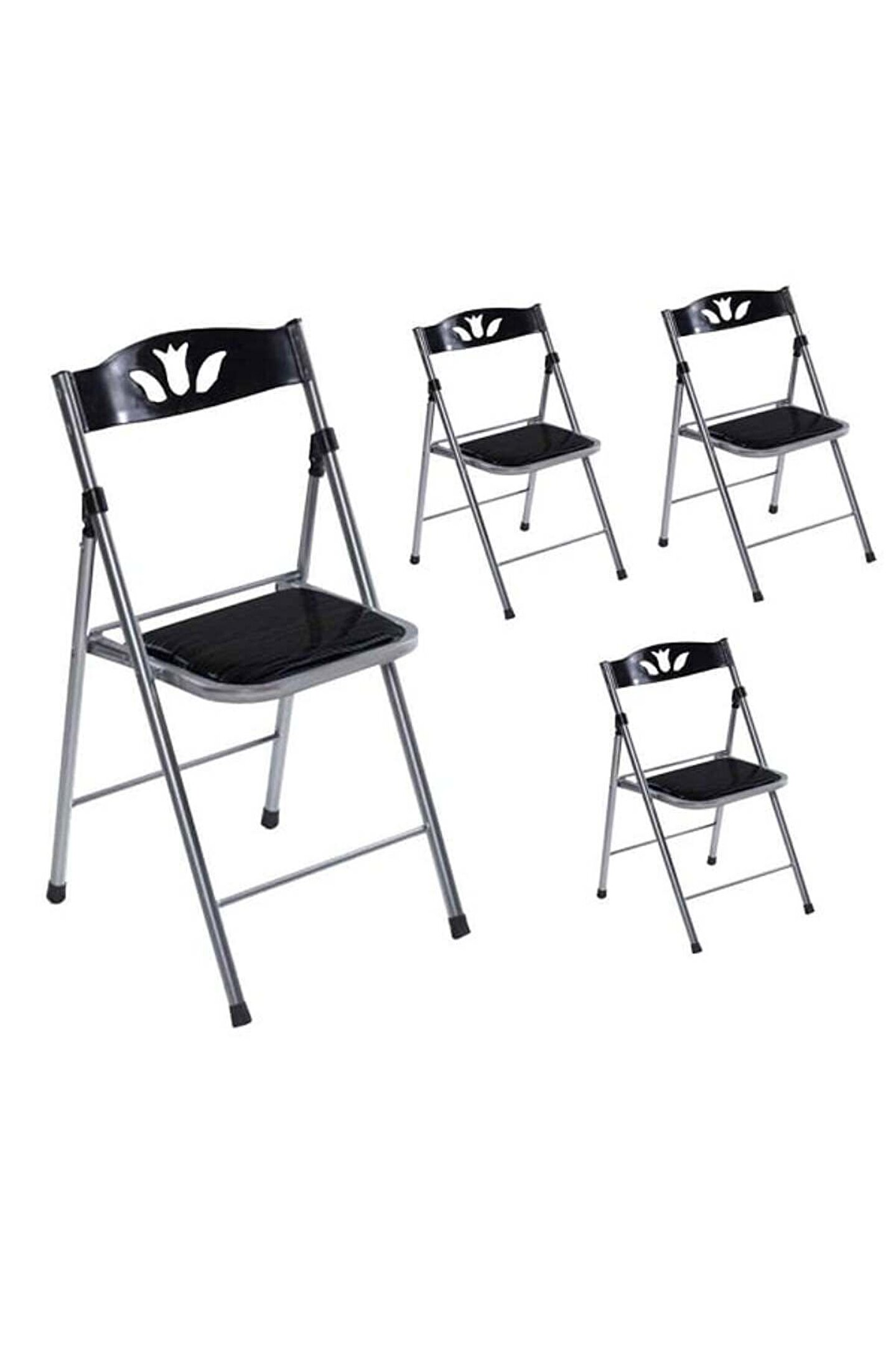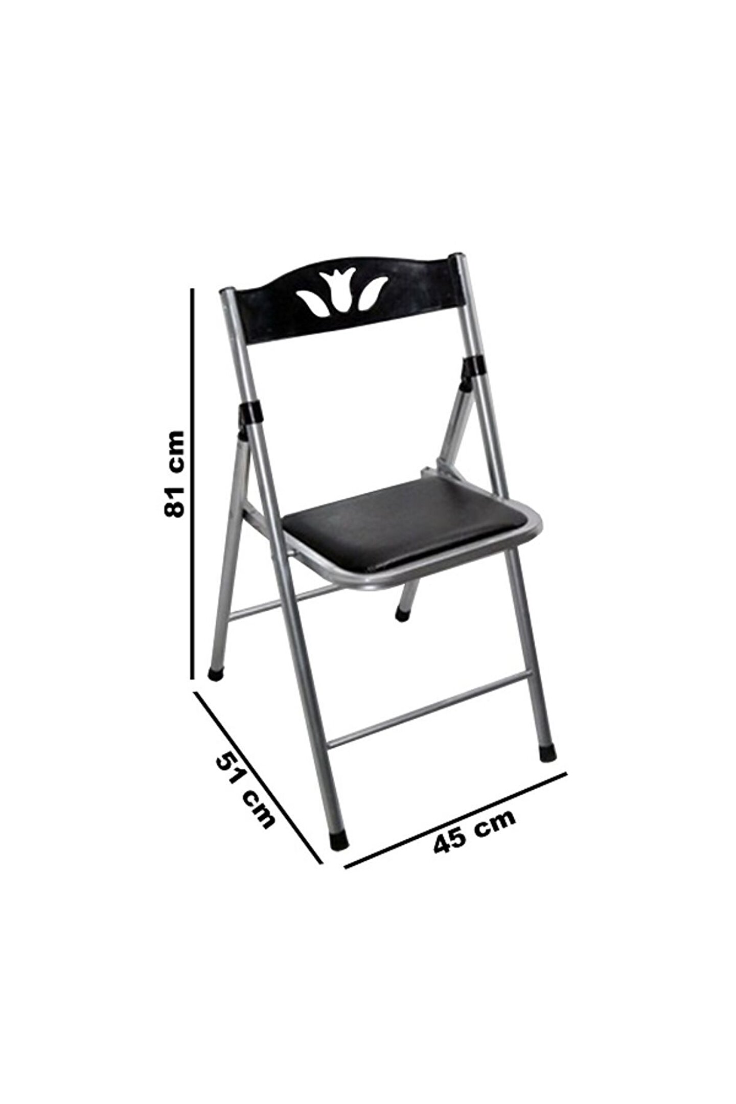Metal materyalden oluşan Eportatif mutfak sandalyesi suni deri bir kumaşa sahiptir. Aynı zamanda siyah renkte olmasıyla birlikte kullanacağınız alana uyumluluk gösterir.; Portatif bir kullanım sağlayan katlanır mutfak sandalyesi hem mutfağınızda veya oturma odanızda hem de ofisinize değerlendirebilirsiniz. Dilediğiniz zaman sandalyeleri kolayca katlayarak uygun bir yerde saklayabilirsiniz.; 4 adet mutfak sandalyesi 90x45x5 cm boyutundadır. Ayrıca oturma kısmında sünger dolgusu vardır.; Metal mutfak sandalyeleri arasında yer alan model 45 cm yüksekliktedir. Sandalyelerin sırt dayama kısmındaki dekoratif desenler de görsel bir estetiklik sunar.; Birinci sınıf malzemeden oluşan suni deri mutfak sandalyesi uzun yıllar boyunca sorunsuz bir şekilde kullanabilirsiniz. Aynı zamanda sandalyelerin ayak uçlarındaki plastik bölümler sürtünme ya da çizilme oluşumunu önler.; Balkonda, mutfakta veya ofiste kullanabileceğiniz sandalyeler ile yeni bir dekorasyon fikri oluşturabilirsiniz. Siyah rengini tüm renkler ile kombinleyerek de kullanabilirsiniz.; Sünger dolgulu oturma yeri sayesinde sandalyelerde otururken konforlu hissedebilirsiniz. Bununla birlikte sırt dayama bölümüne yaslanarak da rahatça oturabilirsiniz.; Çok fazla yer kaplamayan katlanabilir sandalyeleri işiniz bittiğinde kolayca katlayarak uygun bir alana istifleyebilirsiniz. Böylelikle küçük bir alanda bile sandalyeleri saklayarak kullanabilirsiniz.; Metal ve suni deri kaplama malzemelerden üretilen katlanabilir sandalyelerin alt plastik bölümleri sayesinde herhangi bir ses çıkarmadan istediğiniz yere taşıyabilirsiniz.;