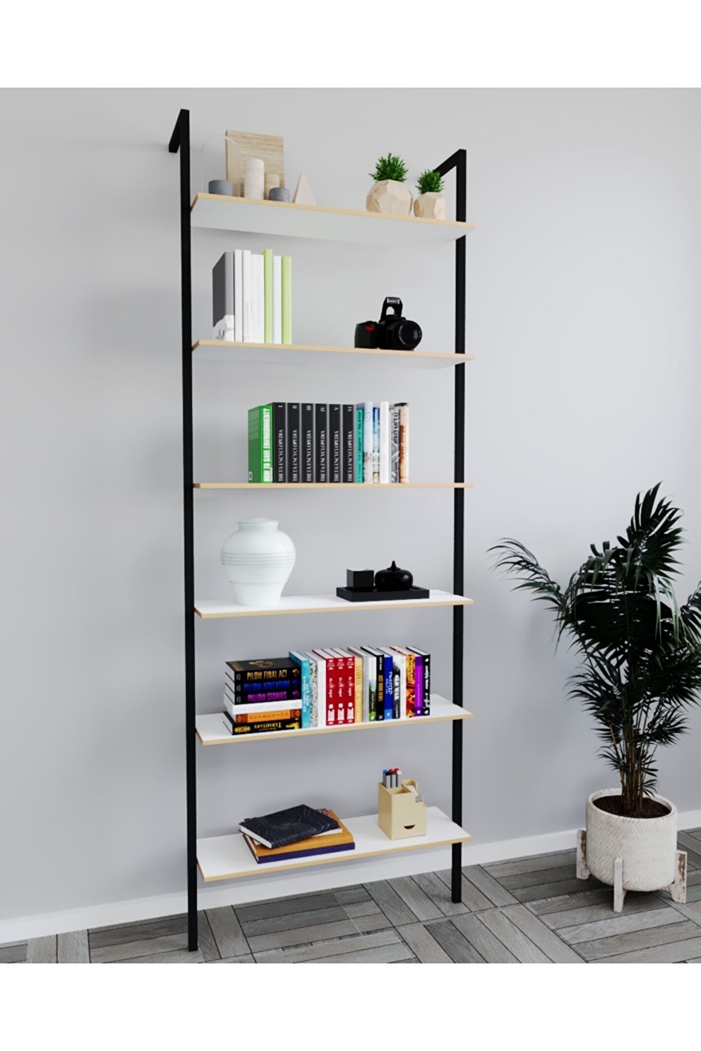 Klasik tasarımıyla her yatak odasına uyum sağlayan metal kitaplık, zamansız bir şıklık sunar; Dayanıklı metal gövde yapısı sayesinde uzun ömürlü kullanım vaat eder ve kitaplarınız için ideal bir saklama alanı oluşturur; 6 katlı geniş raf dizaynı ile kitaplarınızı, dekoratif objelerinizi ve diğer eşyalarınızı düzenli bir şekilde sergilemenize olanak tanır; Beyaz renk seçeneğiyle mekanınıza aydınlık ve ferah bir atmosfer katar, dekorasyonunuza modern bir dokunuş ekler;