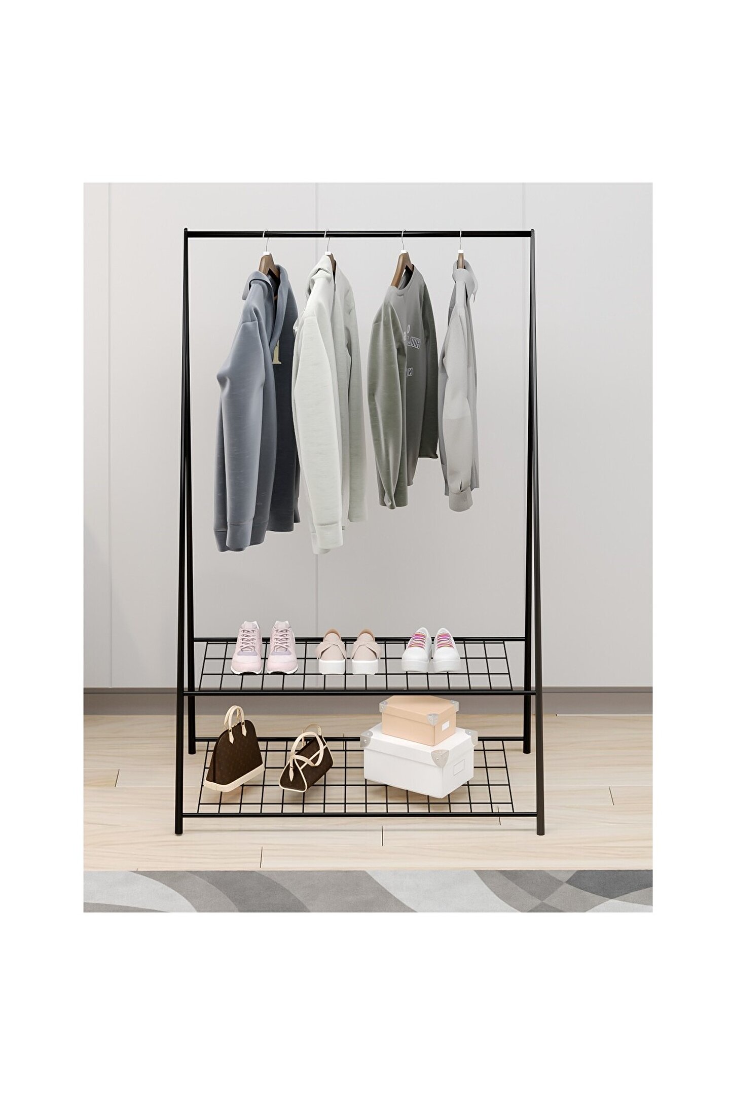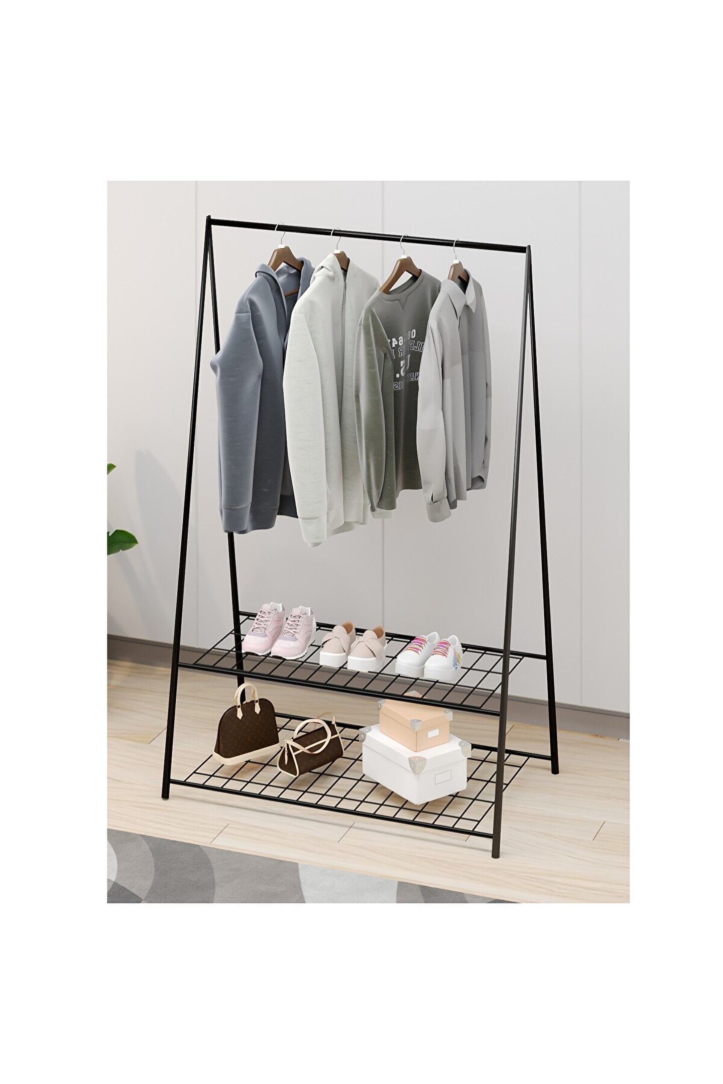 Bu iki raflı askılık, 140 x 85 cm boyutlarındadır ve yeterli alan sunar. Üst raf, özellikle elbiseler, ceketler, gömlekler ve diğer uzun kıyafetler için idealdir. Alt raf ise pantolonlar, etekler veya katlanmış giysiler gibi daha kısa veya katlanabilir öğeleri saklamak için uygundur.