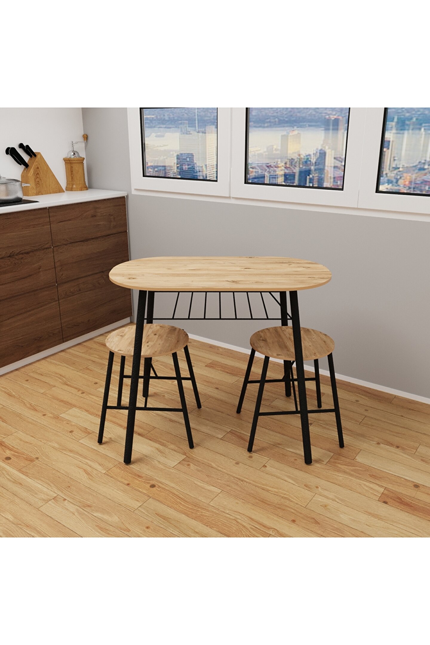 Modern tasarımıyla dikkat çeken bu mutfak masası takımı, siyah sandalyeleri ve oval masa yüzeyi ile mekanınıza şıklık katıyor; Sabit masa fonksiyonu sayesinde stabil ve güvenli bir kullanım sunar, hareketli parçaları olmadığı için uzun ömürlüdür; Sandalyelerde kumaş kullanılmamış olup, kolay temizlenebilir yüzeyi ile pratik bir kullanım sağlar; Suntalam materyalden üretilmiş olup, dayanıklılığı ve uzun süreli kullanım vaat eder; 2 yıl garanti süresi ile satın alma sonrası da güven verir ve müşteri memnuniyetini ön planda tutar;