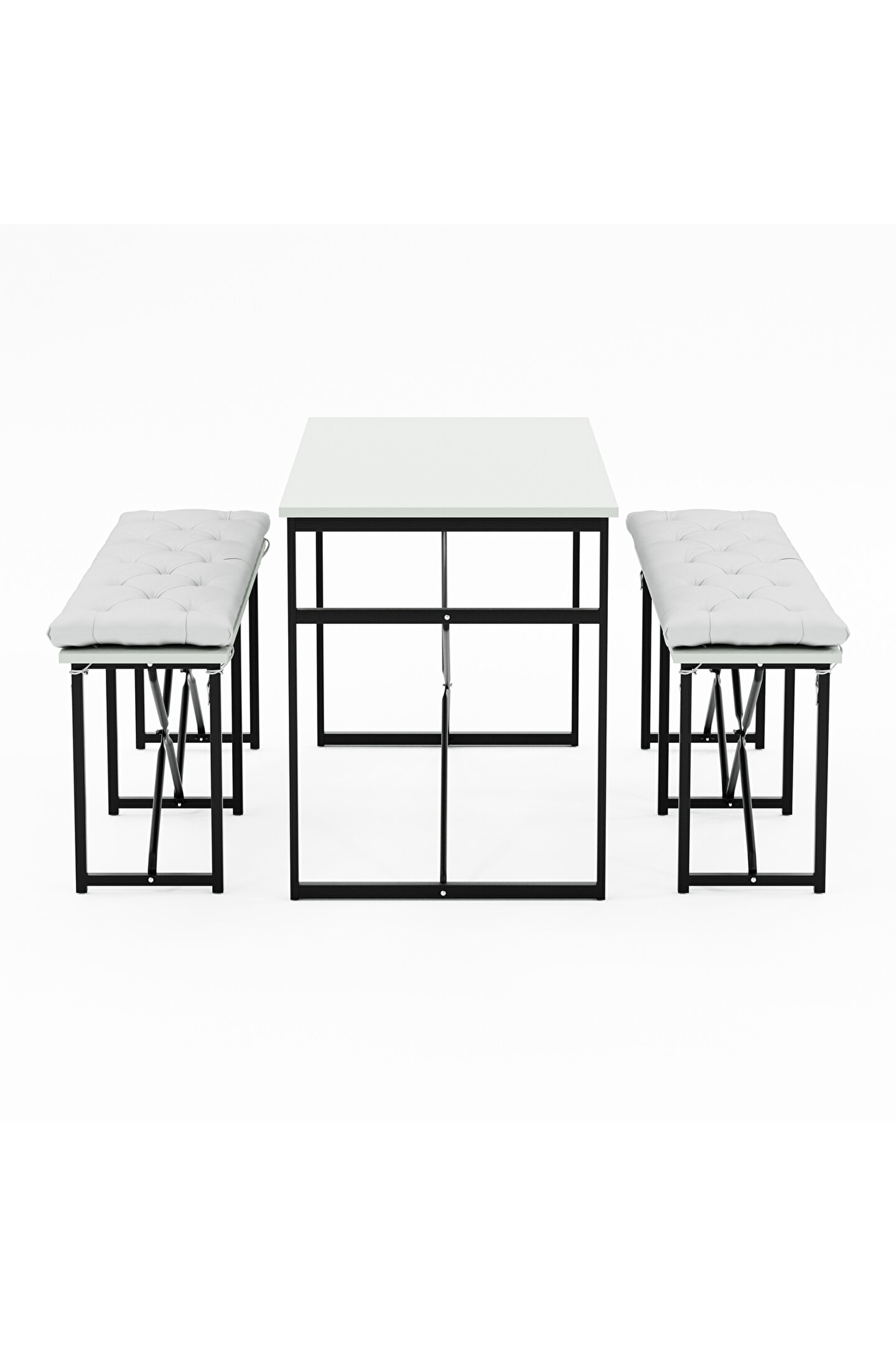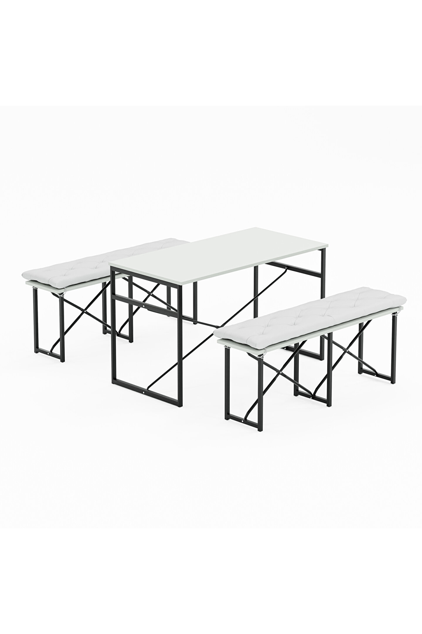 eportatif Masa Takımı Minderli Bench Bank Masa Seti 120x60 Masa Mutfak Masası Yemek Masası Beyaz 1555