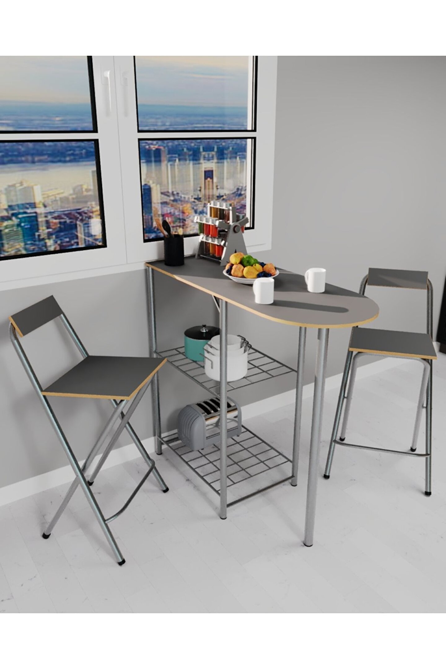 eportatif Mutfak Bar Masa Sandalye Takımı Katlanır Bar Sandalye 2 Kişilik Mutfak Masası Gri 1297