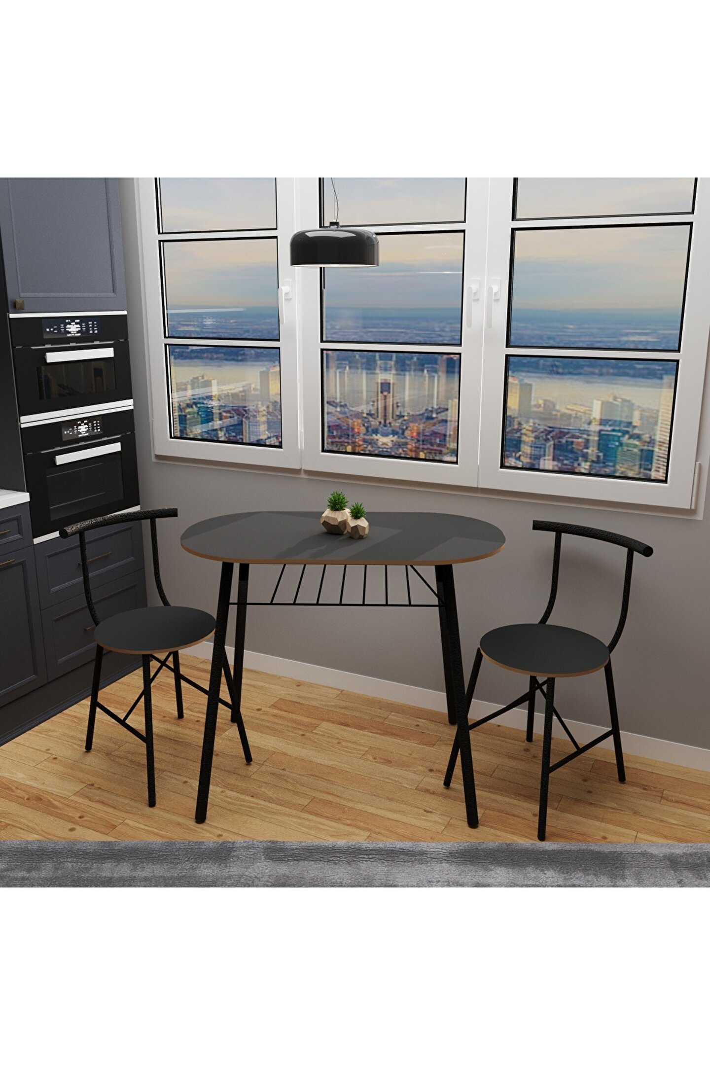 Mutfak Masa Sandalye Takımı 2 Kişilik Masa Sandalye Seti Füme, modern ve şık duruşu ile kullanıcıları anında etkileyen bir settir. Trend dizaynı ile muhteşem bir atmosfer yaratan set, iç mekanların havasını kolayca değiştirir ve beklentinizi maksimum oranda karşılar.