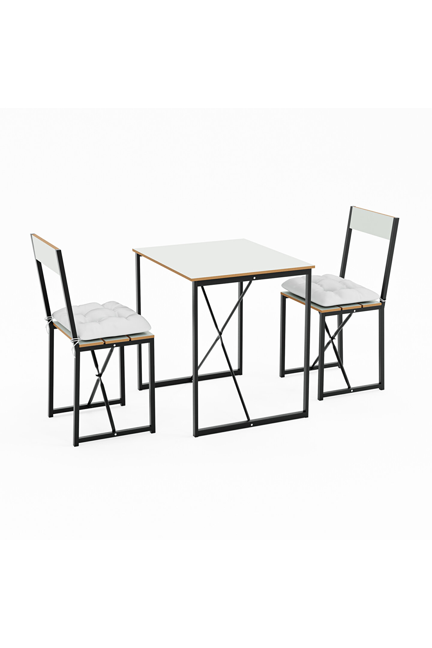 Mutfak Masası Minderli 2 Kişilik Balkon Masa Takımı Beyaz 1493