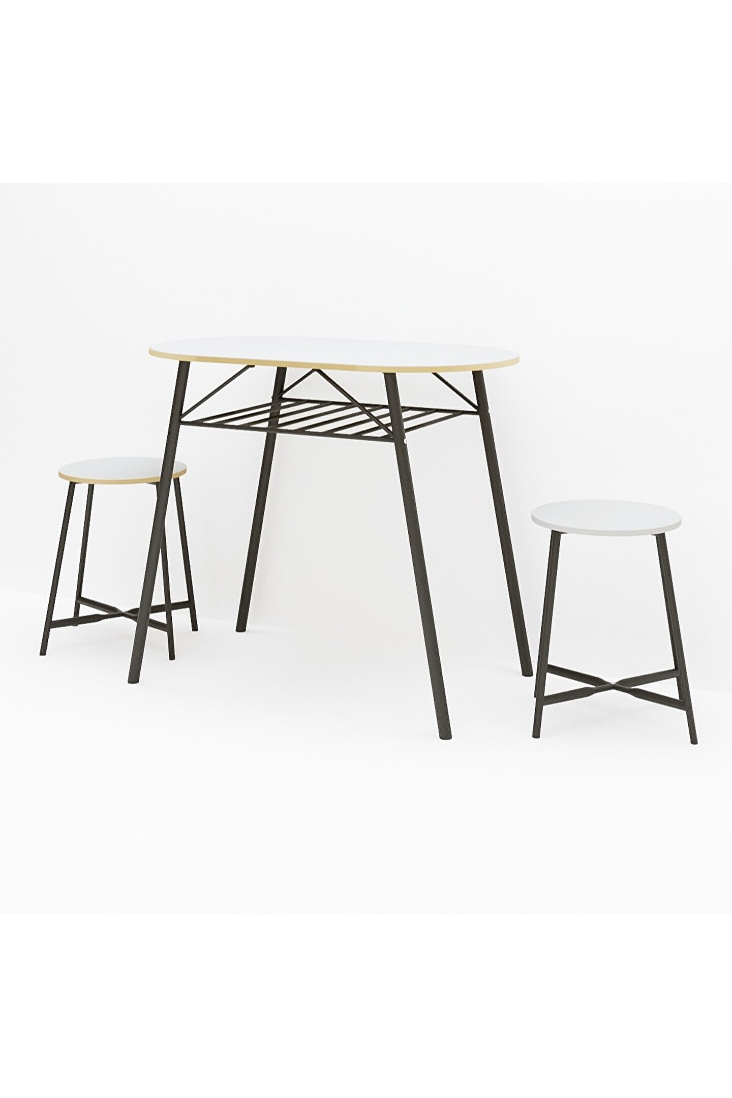 Mutfak Masası Oval Tabure Takımı Masa Sandalye Takımı Beyaz ı, iki kişilik bir set olarak gelir ve içeriğinde bir adet oval masa ile iki adet tabure bulunur. Bu parçaların her biri, hem salon hem de mutfak gibi çeşitli yaşam alanlarınıza uyum sağlayacak şekilde estetik bir tasarıma sahiptir. Modern ve minimalist görünümü, herhangi bir oda dekorasyonunu kolaylıkla tamamlar.