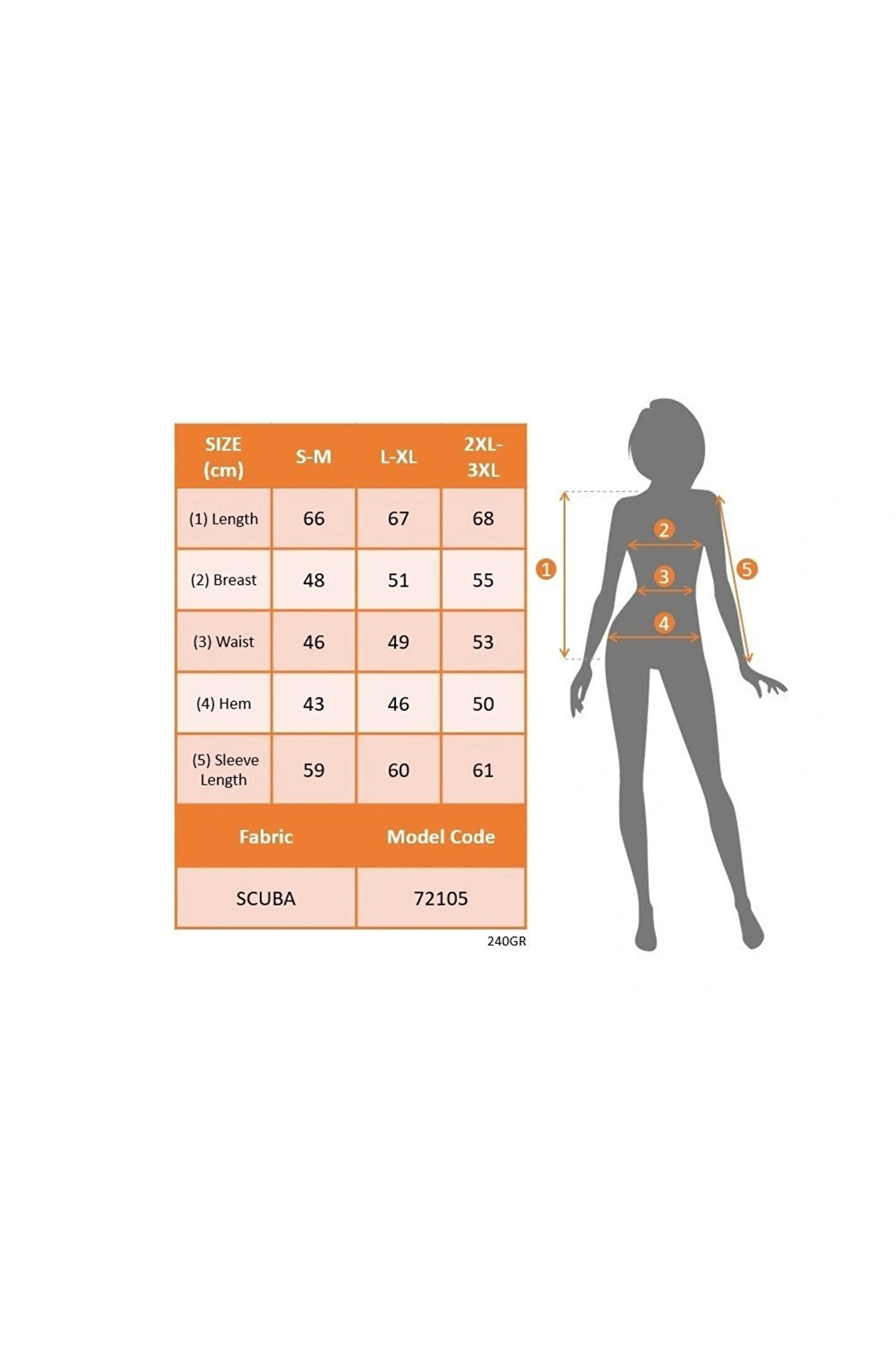 Kadın Uzun Kollu Bisiklet Yaka Renkli Blok Baskı Dalgıç Bluz