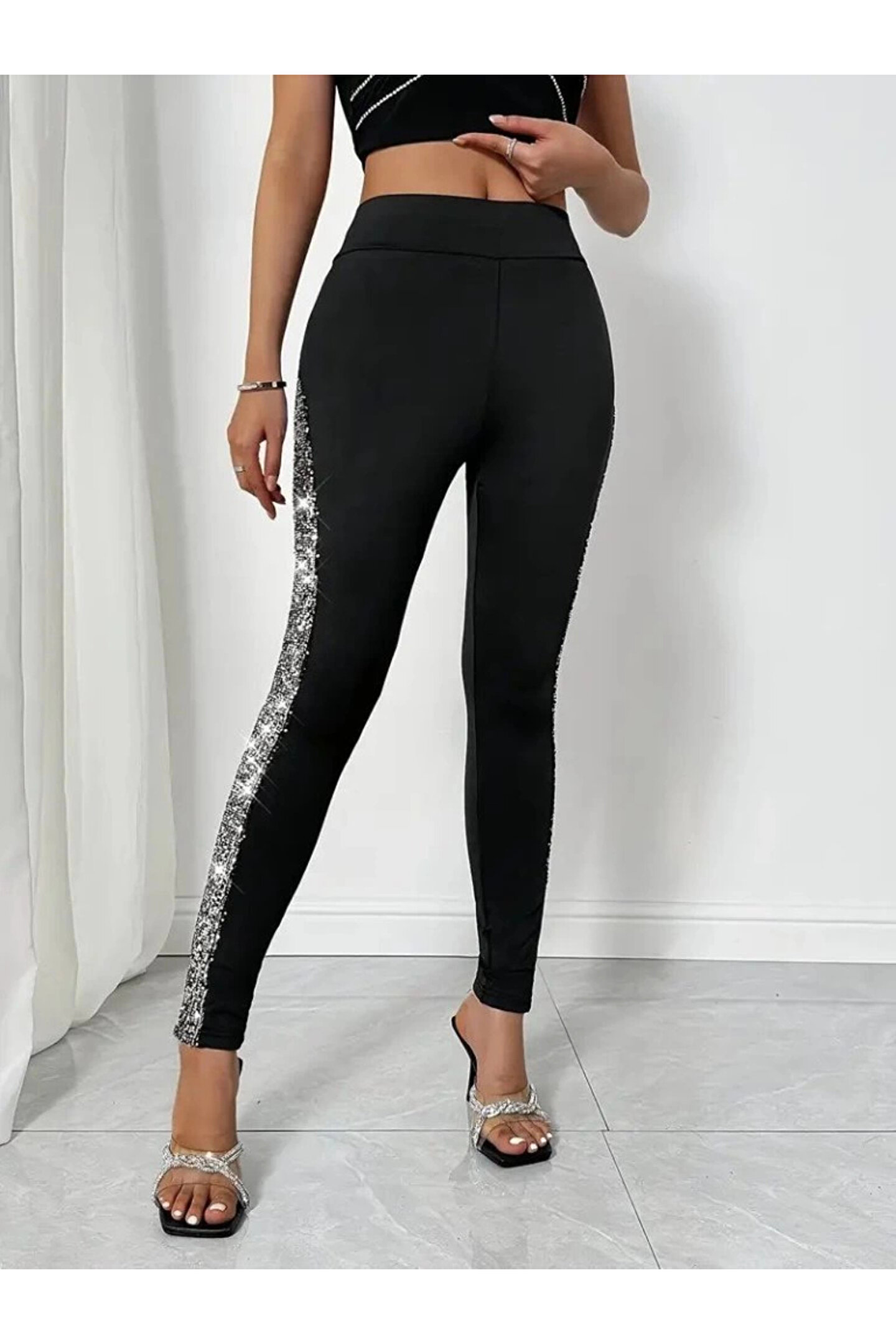 EQURİ Kadın Yüksek Bel Yarı şerit Pul Payetli Dalgıç Tayt