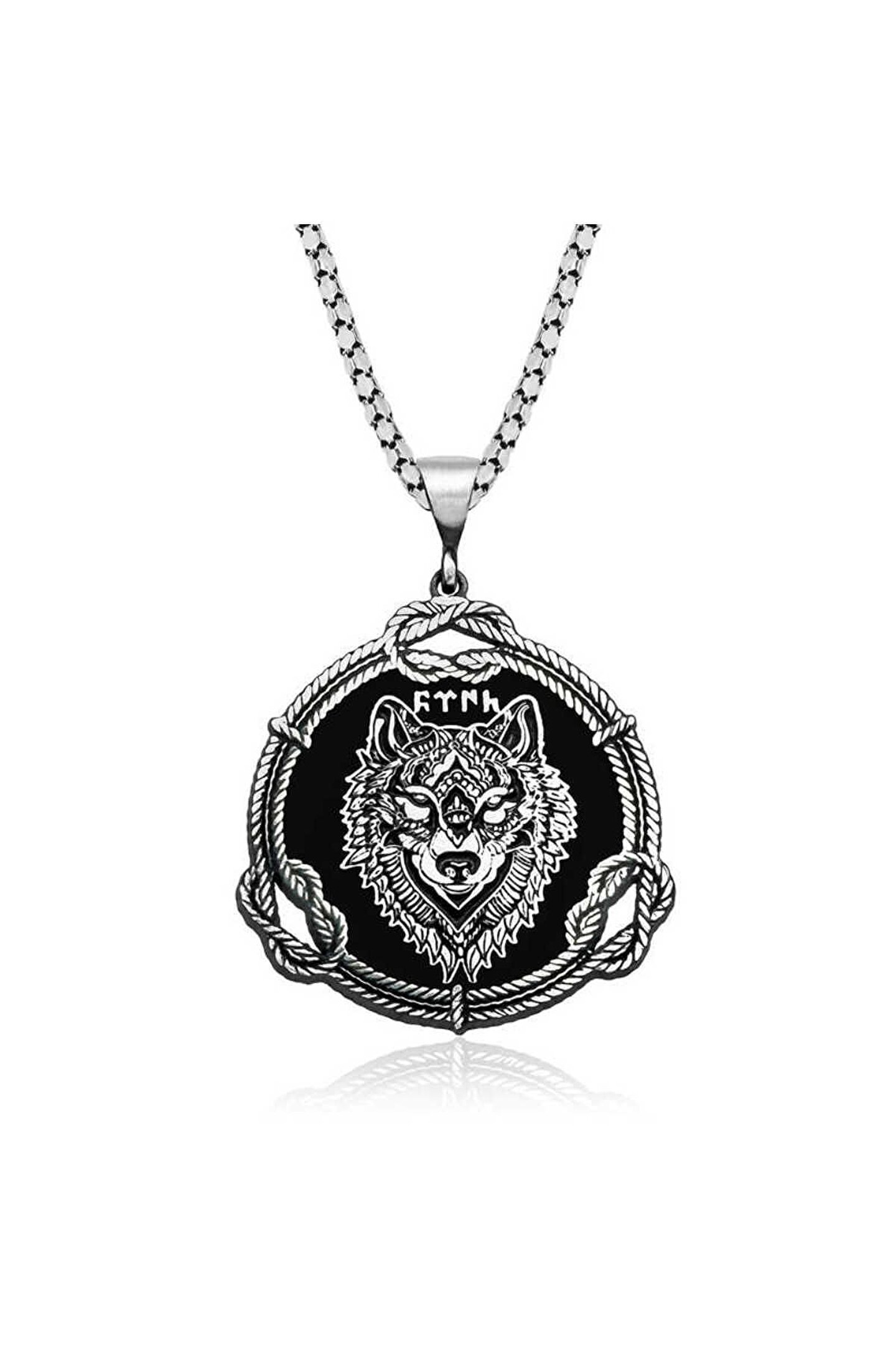 Samur Parti Parti Aksesuar & Kostüm 925 Ayar Gümüş Kurt Motifli Göktürkçe Türk Yazılı Gümüş Kolye