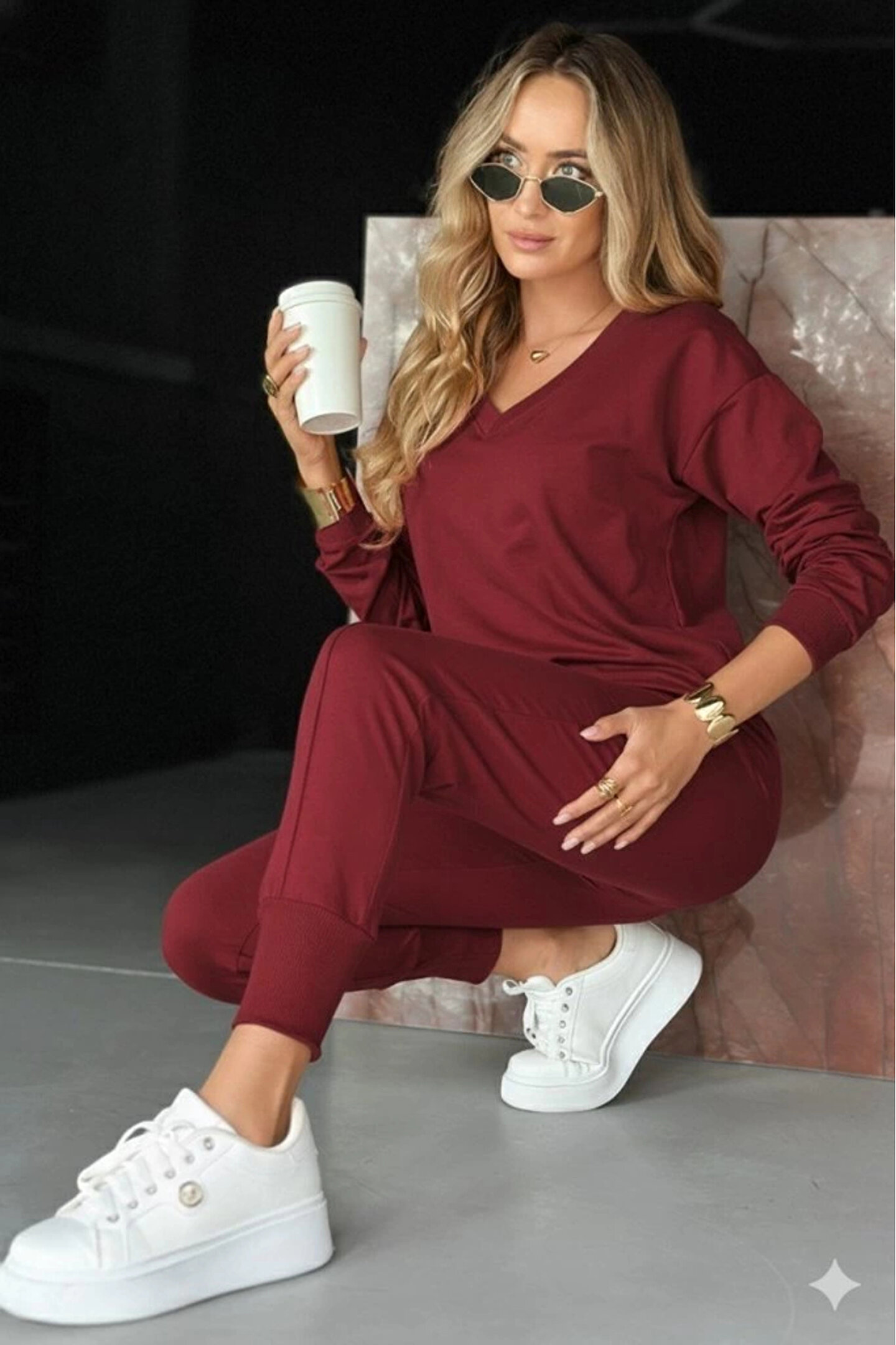 ermege Kadın Uzun Kollu V Yakalı Viskon Iki Iplik Bluz Ve Pantolon Ikili Takım