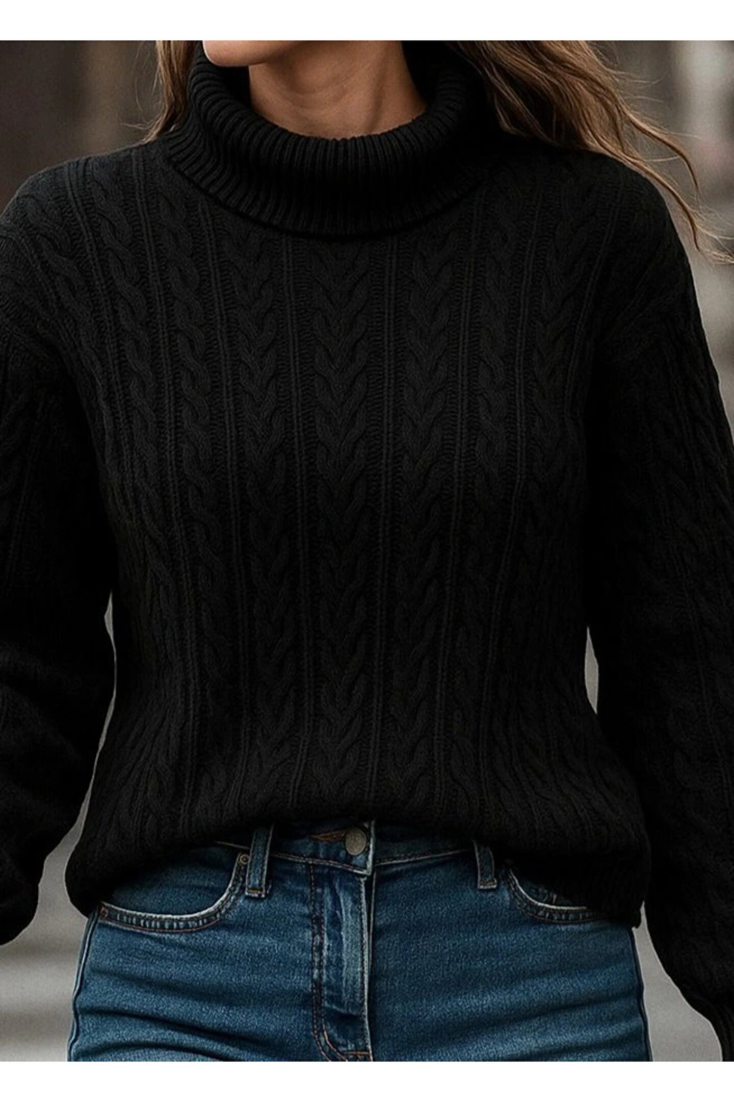 Uzun Kollu Yarı Balıkçı Yaka Triko Bluz