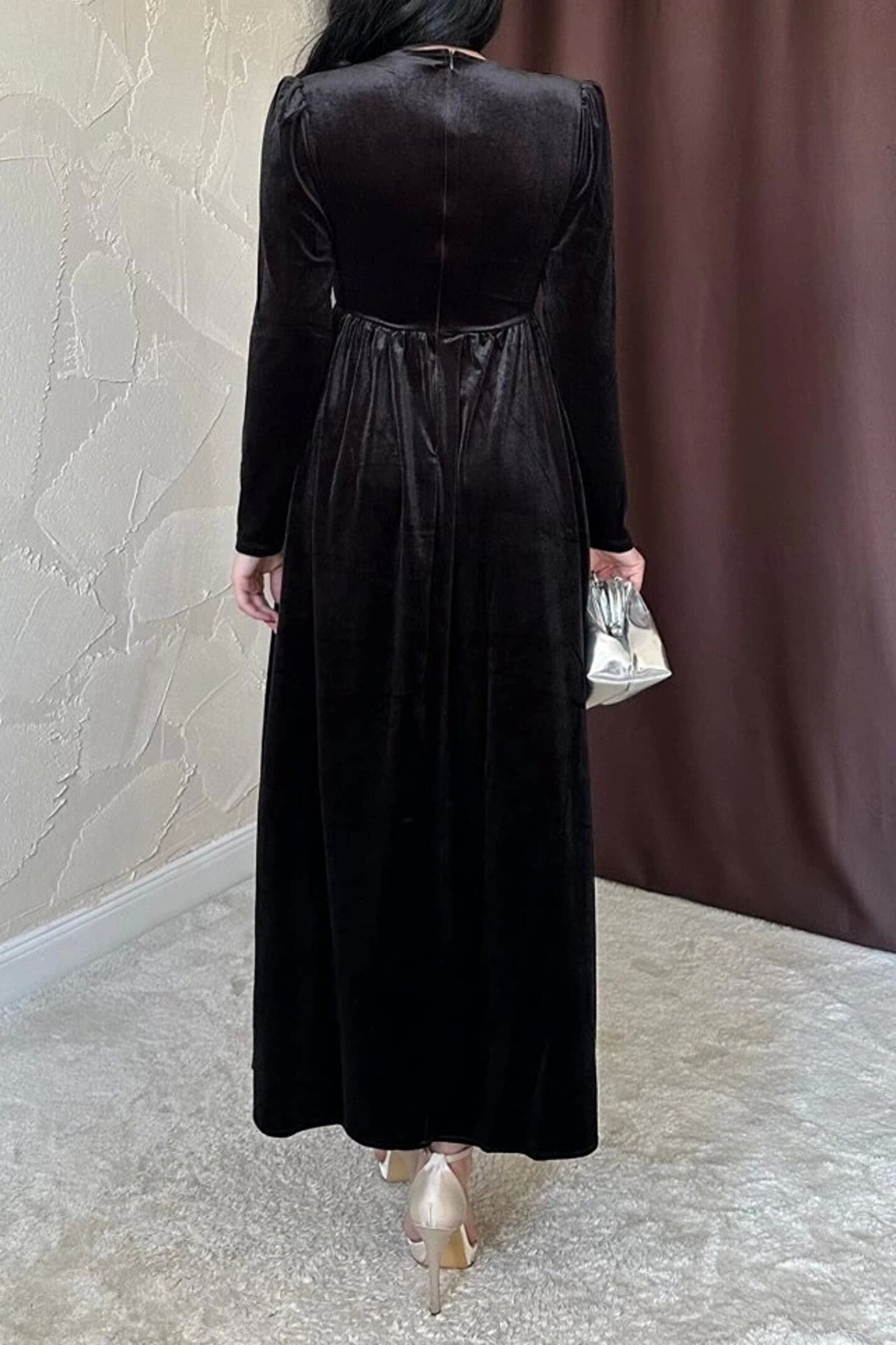 eryvon Siyah Göğüs Altı Taşlı Elbise