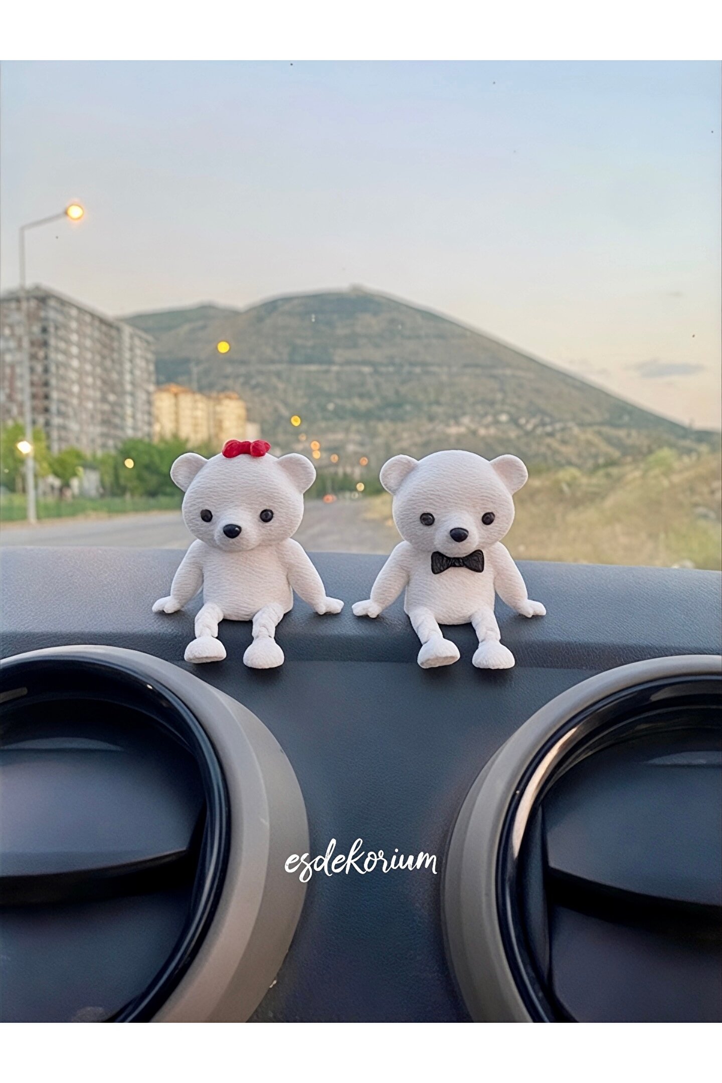 Aracınızda sıcak, sevimli ve zarif bir dokunuş yaratmaya hazır mısınız? @esdekorium farkıyla tasarlanan bu çiftli ayıcık seti, araç torpidosu başta olmak üzere masa, raf ya da vitrin gibi alanlarda kullanabileceğiniz özel bir dekoratif üründür.; Detaylı tasarımı, minimal boyutu ve sade şıklığı ile bulunduğu ortama nostaljik ama zarif bir hava katar.;