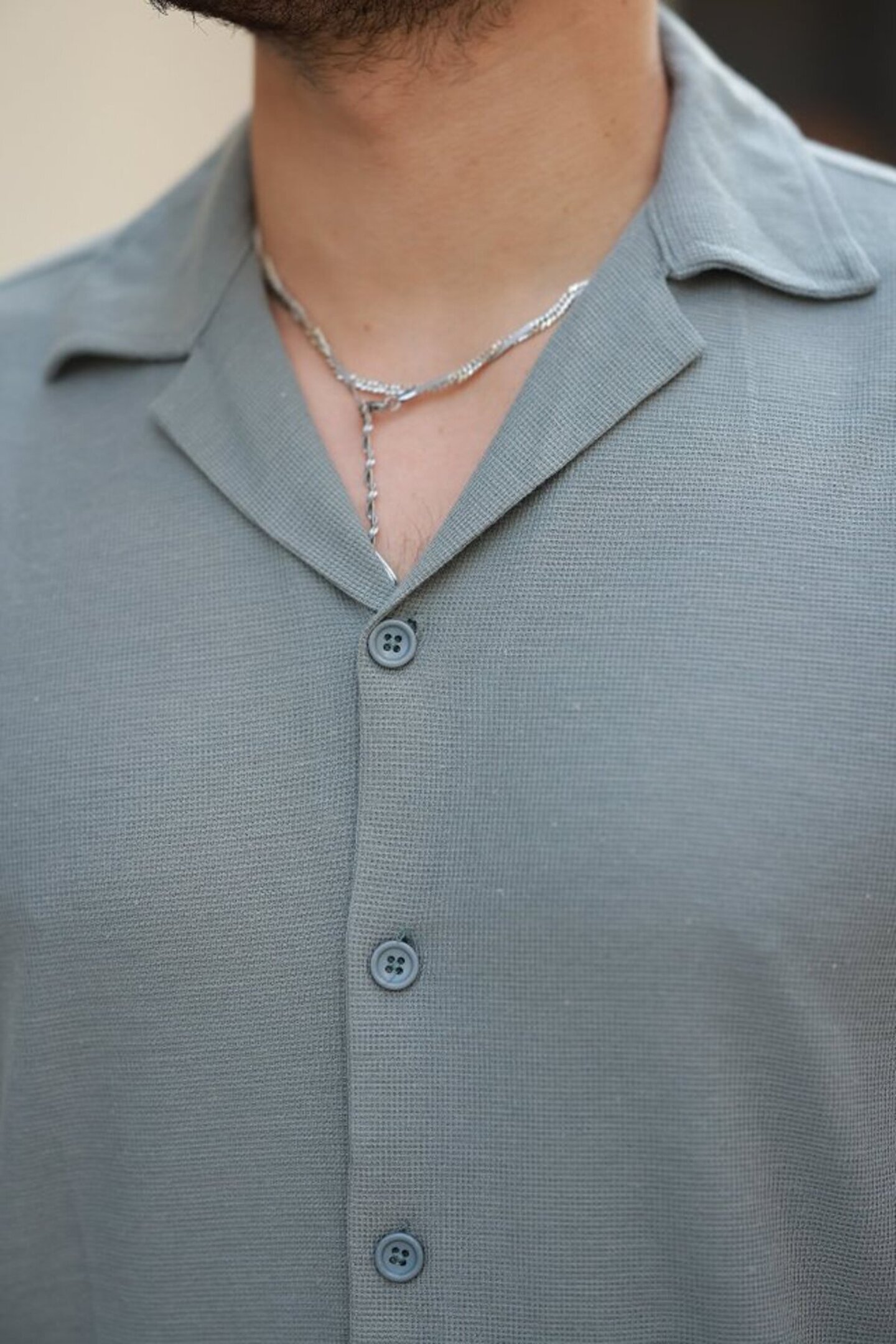 munn collection Erkek Apaç Yaka örme Kumaş Kısa Kollu Gömlek