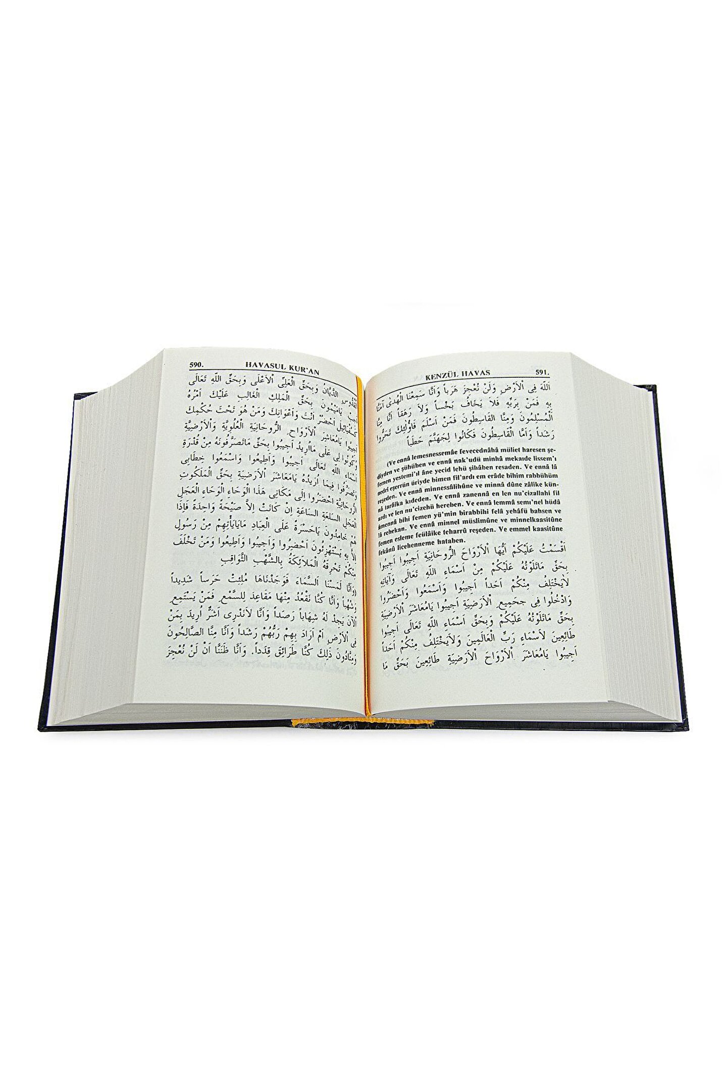 Havas-ul Kur'an Kenz-ül Havas - Türkçe Açıklamalı - 4 Cilt Tek Kitap "Bu kitapta dualar, ayetler, vefkler, tılsımlar arapça ve türkçe okunuşları havasları ile birlikte yer almaktadır.; Ebced Vefk ve tılsımlar arapça olarak çizilmiş olup neye yararlı oldukları, faziletleri alt kısımlarında yer almaktadır.; Ürün Özellikleri : Yazar: Es Seyyid Süleyman El HüseyniSadeleştiren ve Tercüme Eden: H.; Mustafa VARLIKategori: Dua ve Havas KitaplarıSayfa Sayısı: 1136Boyut: 14 x 21 cmBasım Yeri: İstanbulKapak Türü: CiltliKağıt Türü: Kitap KağıdıDili: Türkçe - Arapça Ağırlık : 912 gr ;