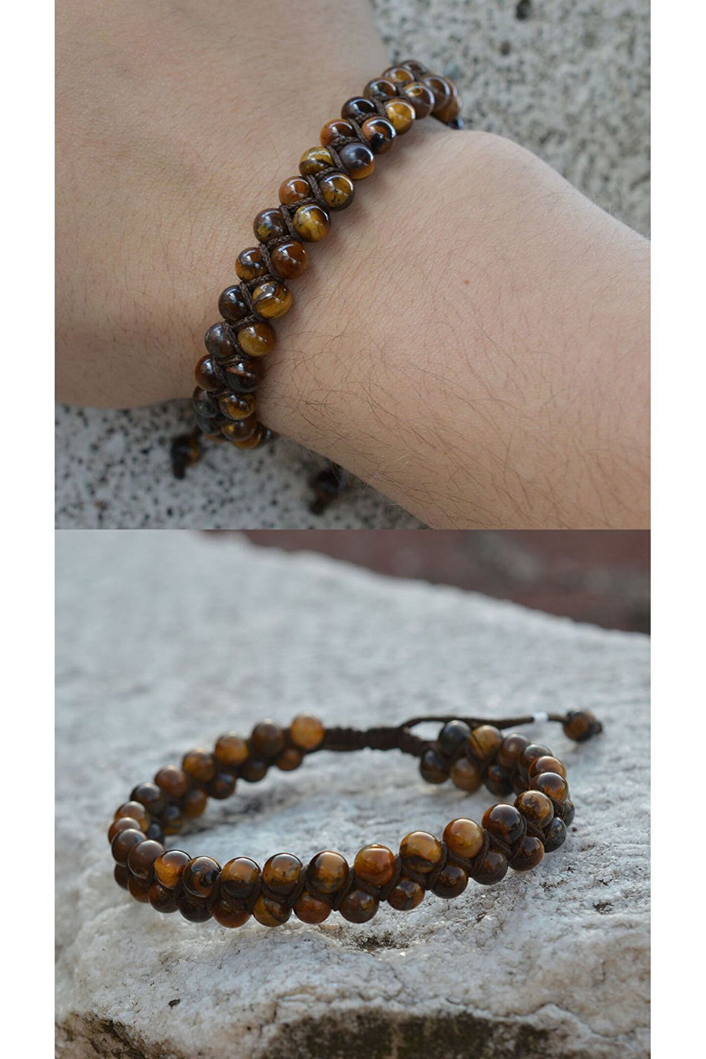 Doğal taş kullanımı sayesinde her bileklik benzersiz ve otantik bir görünüm sunar; Kaplan gözü tasarımı ile dikkat çekici ve şık bir aksesuar seçeneği sağlar; 6 mm kalınlığındaki örgü yapısı, bilekliklere zarif bir dokunuş katar;