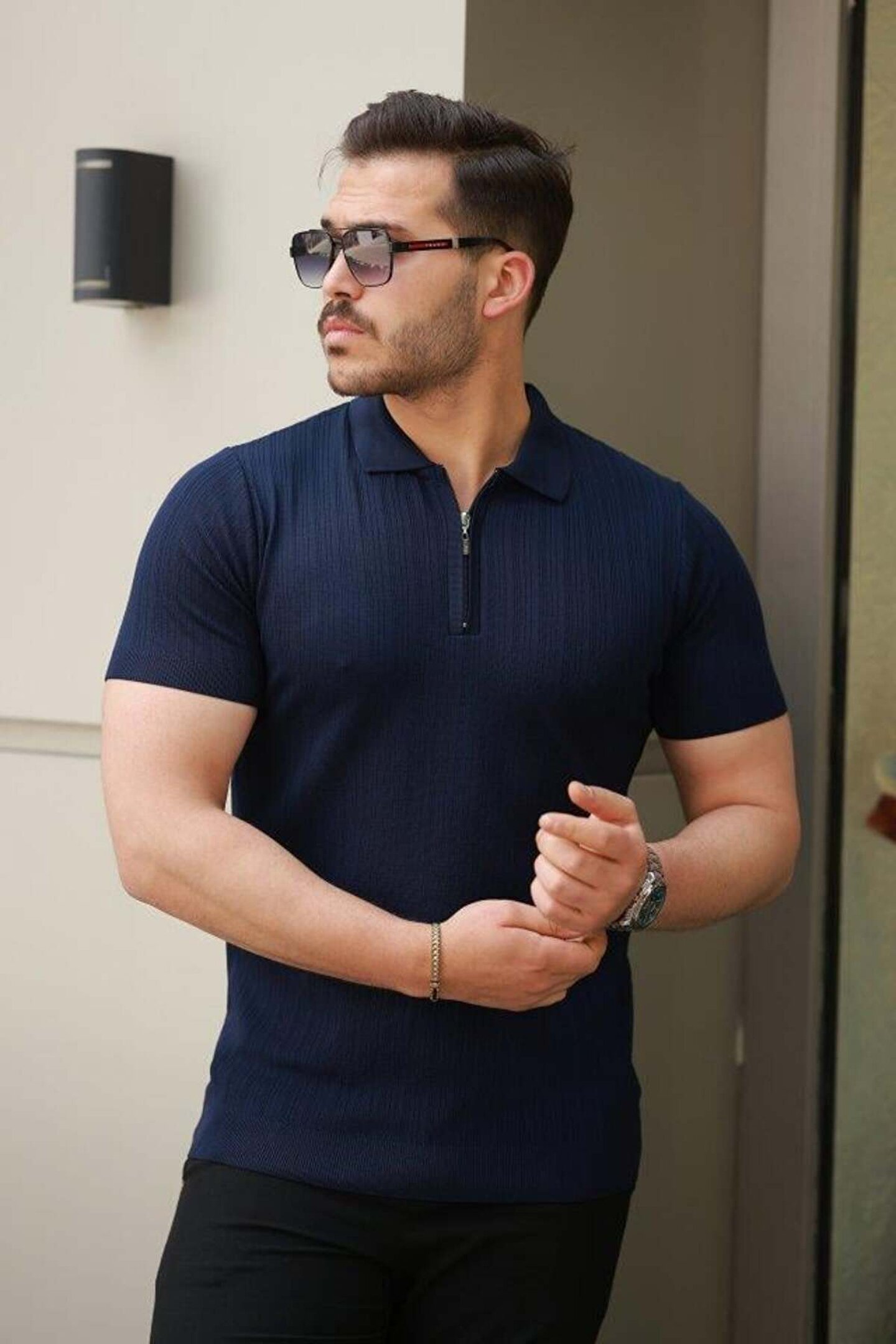 Erkek Fermuar Yakalı Kısa Kollu Tişört