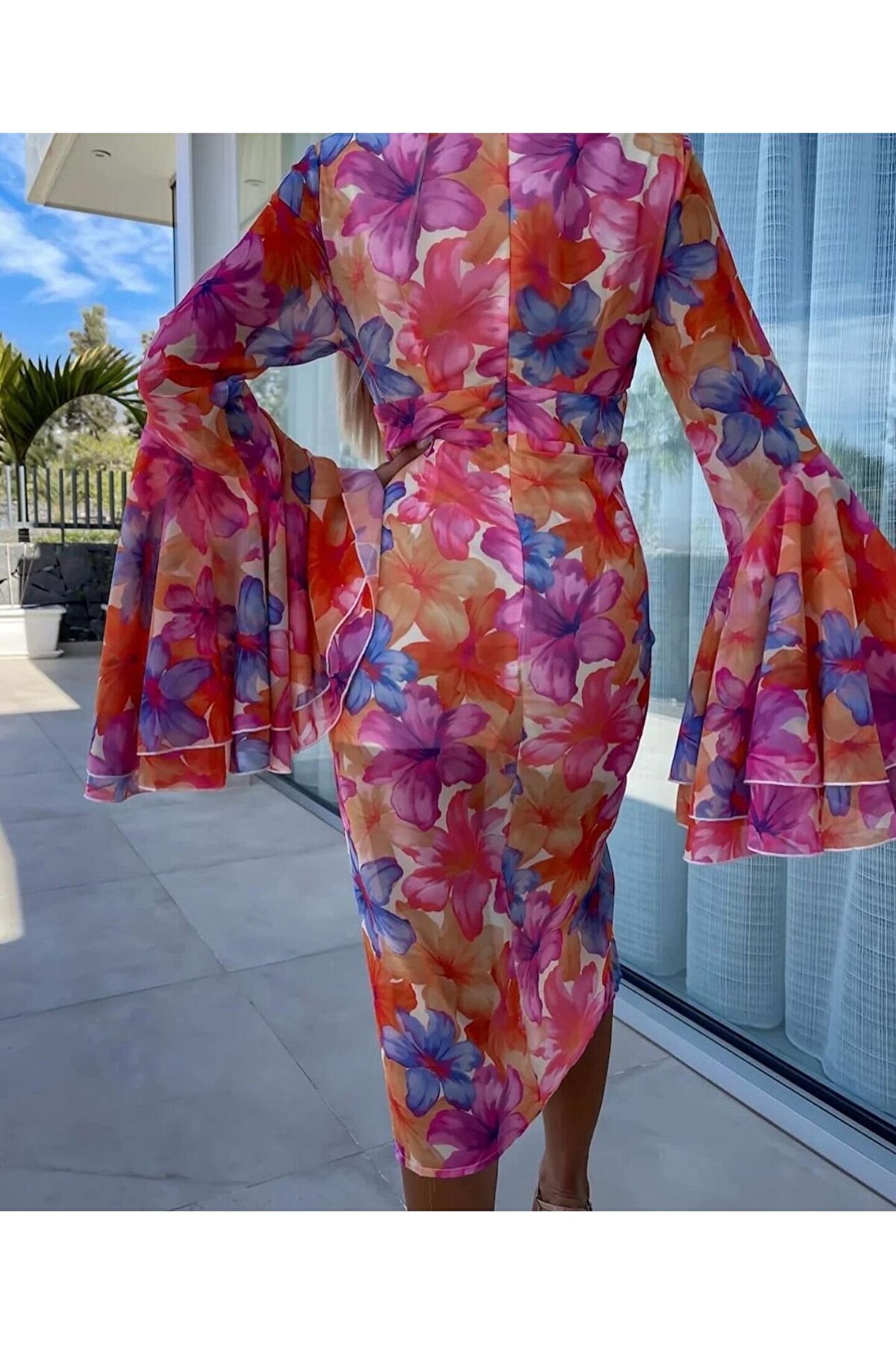 ESSE BUTİK Kadın Göğüs Dekolteli Kolları Volan Detay Astarlı Tül Elbise