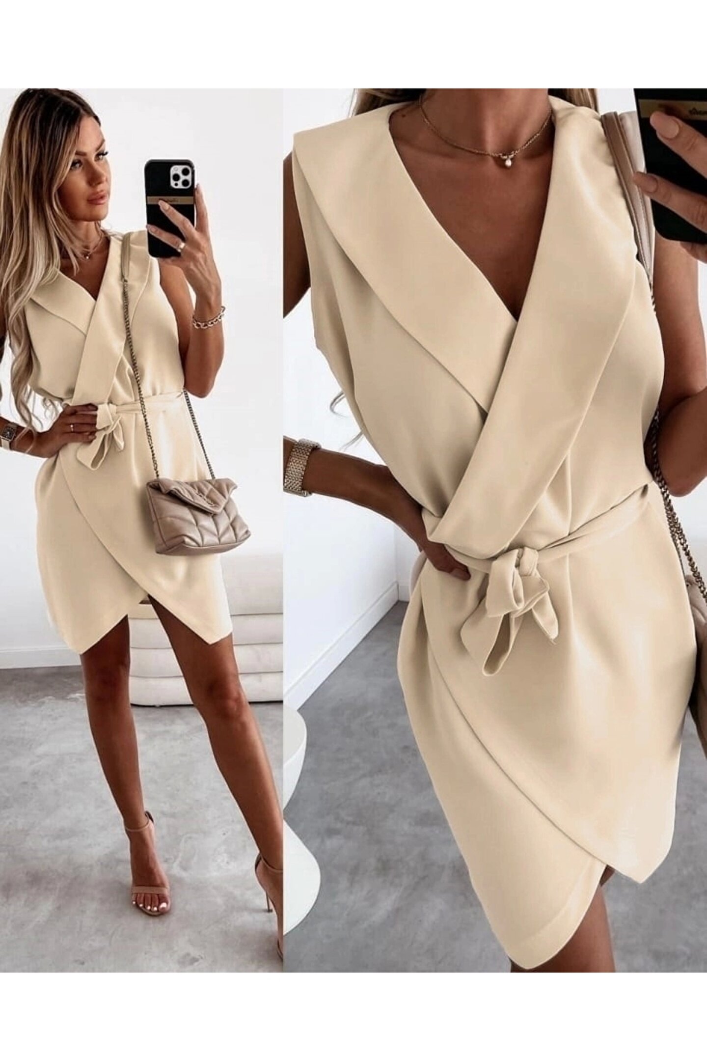 Kruvaze Yaka Kuşaklı Krep Kumaş Elbise