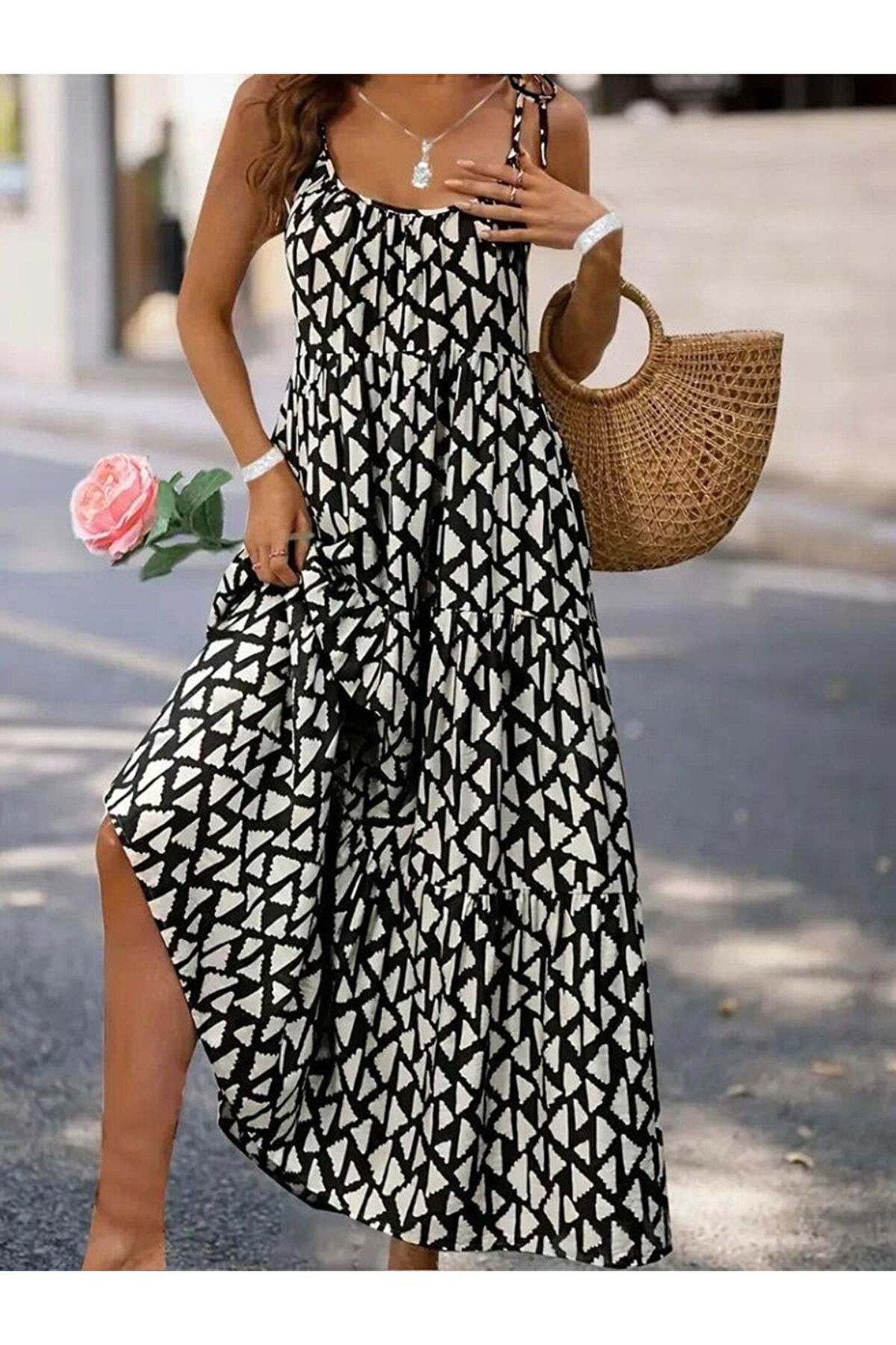 Kadın Askılı Yuvarlak Yaka Fırfırlı Desenli Uzun Bürümcük Elbise