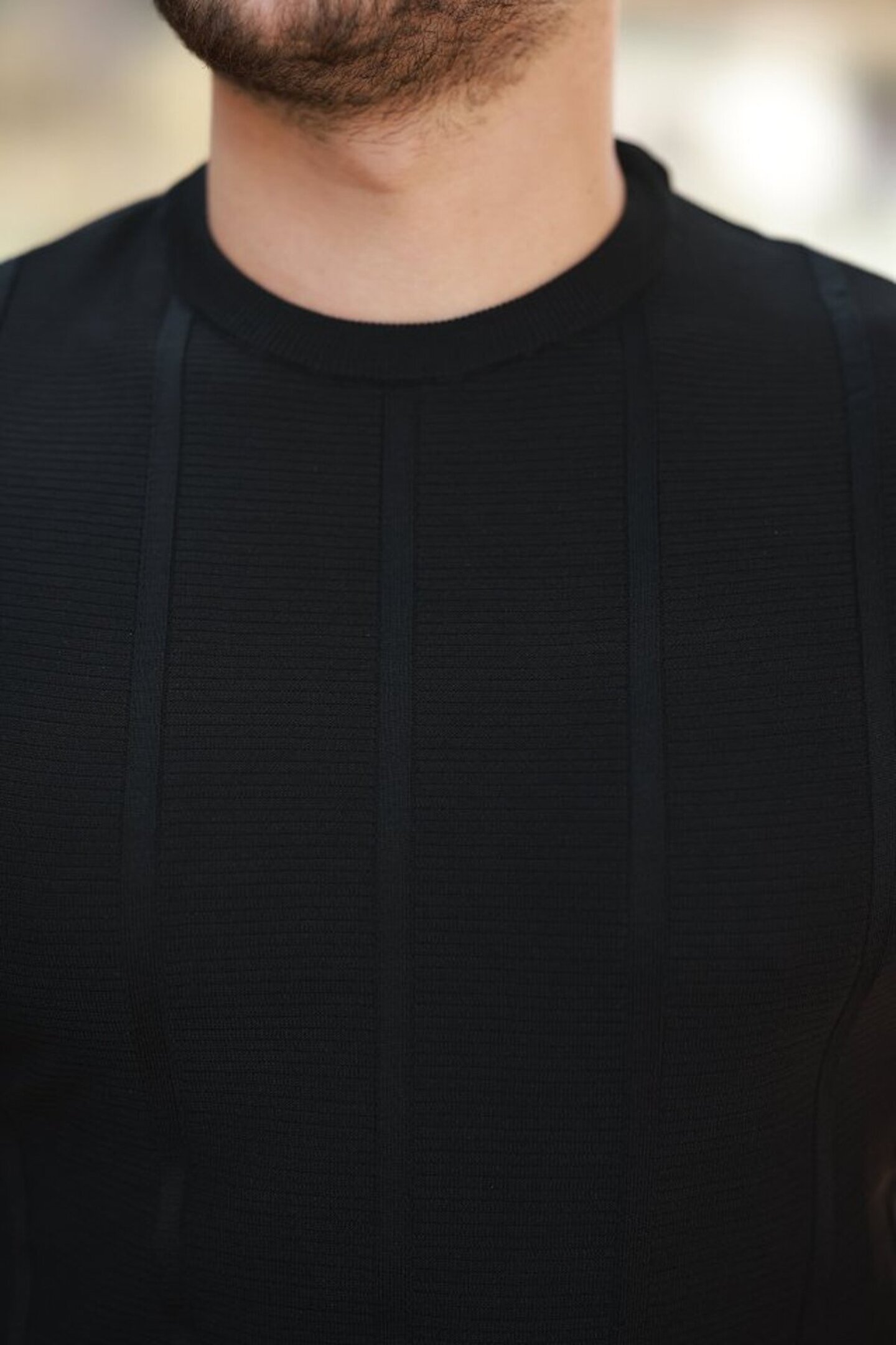 Erkek Desenli çizgi Kabartmalı Kısa Kollu Tişört