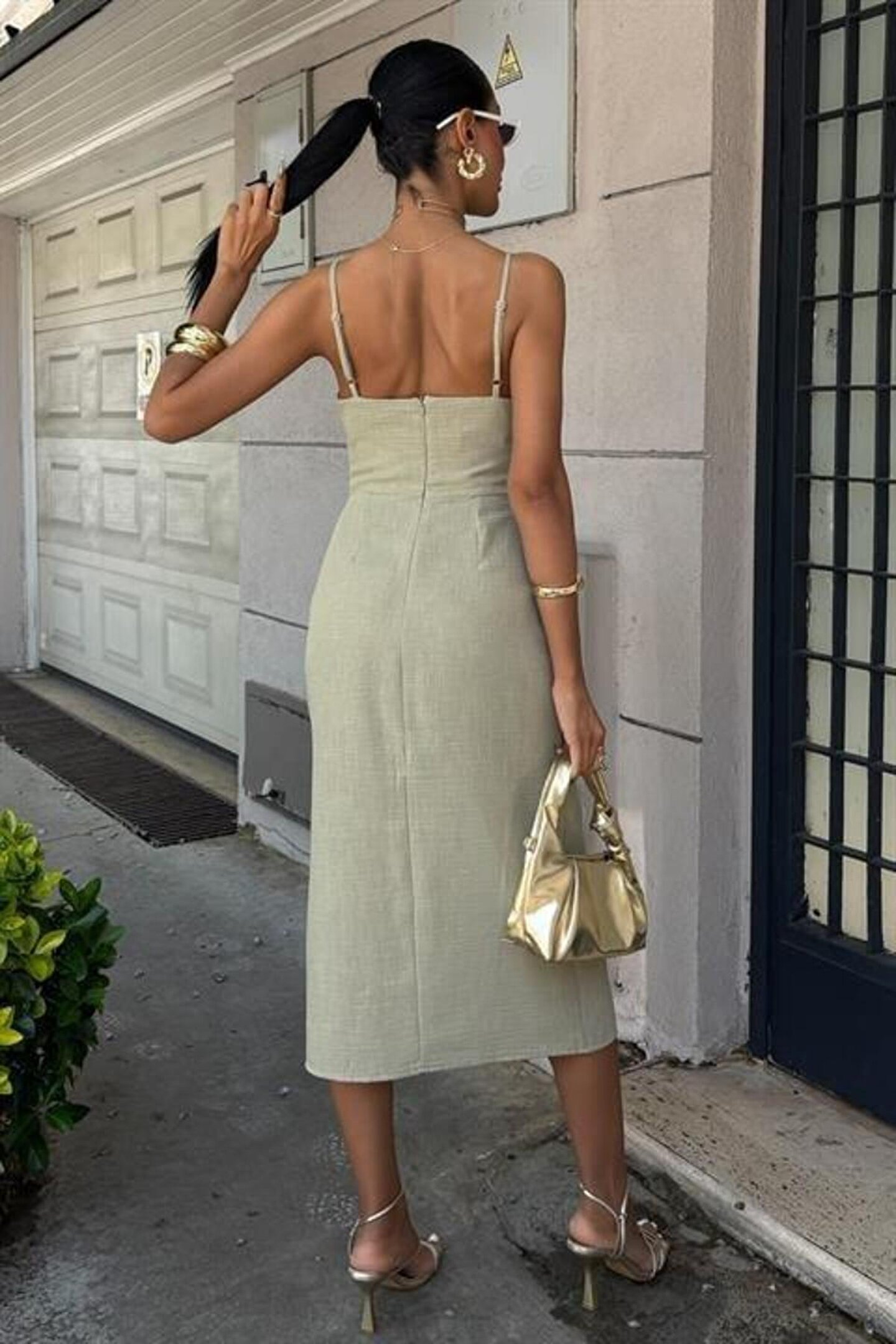ETİLER COLLECTION Göğsü Aksesuarlı Önü Yırtmaçlı Elbise 2899