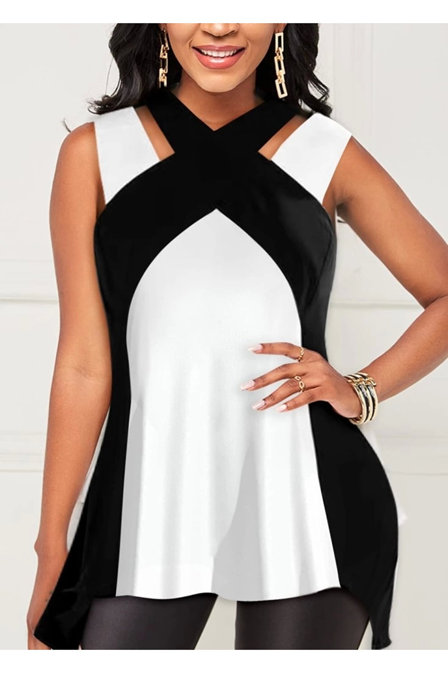 Kadın Askılı Boyundan çapraz Halter Yakalı çift Renkli Viskon Bluz