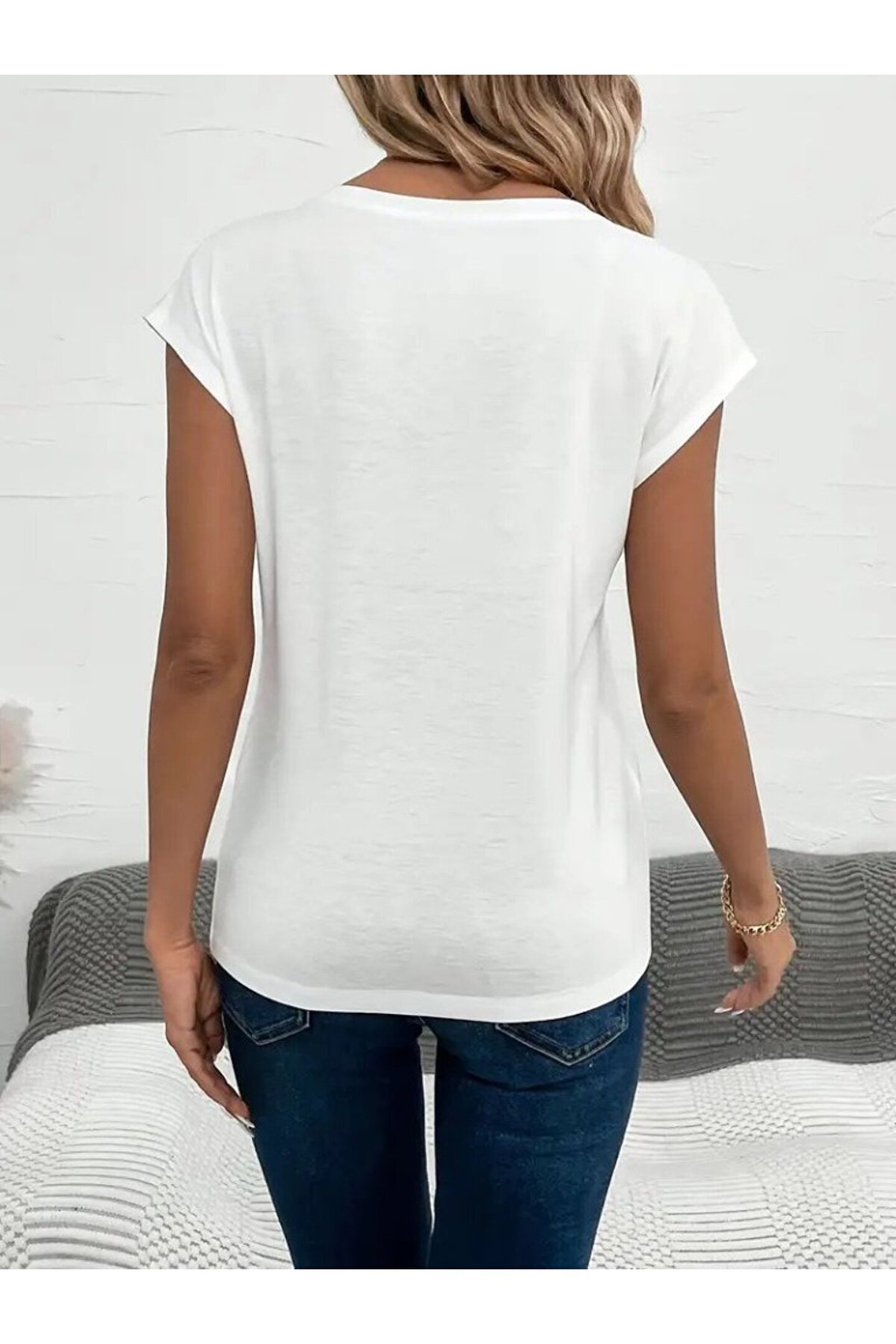 ETİLER COLLECTION Kadın Kısa Kollu V Yakalı Kalp Desen Viskon Bluz