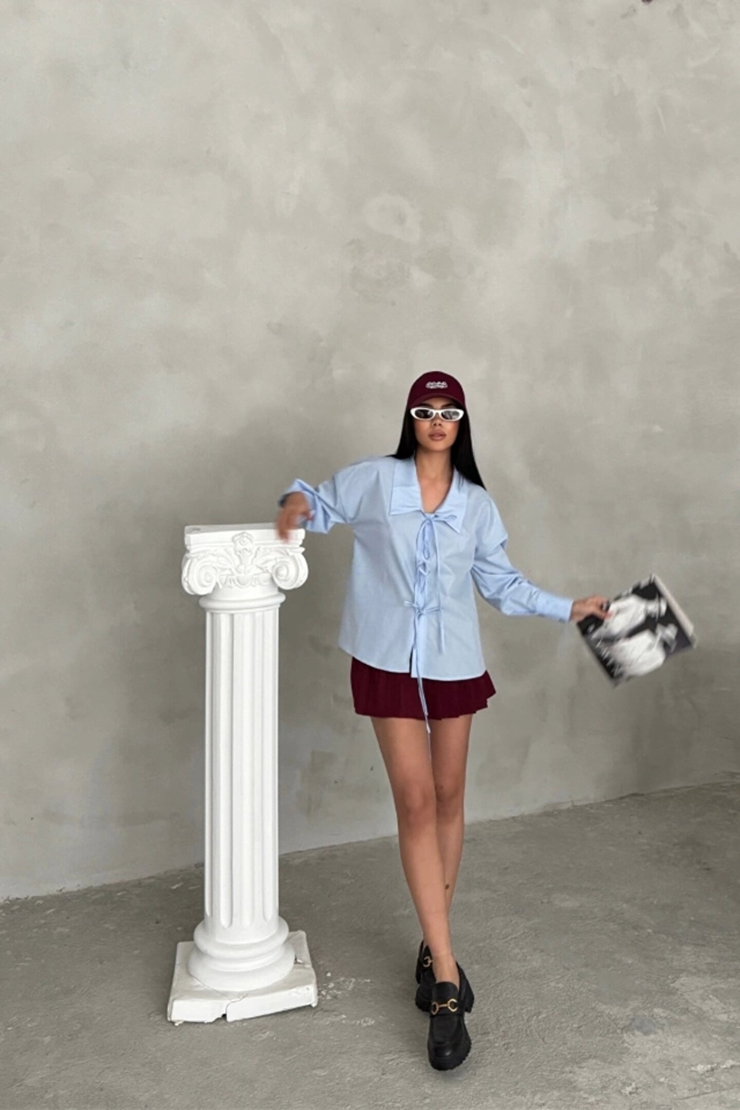 ETİLER COLLECTION OKUL YAKA POPLİN GÖMLEK İP BAĞLAMA DETAYLI - Bebe Mavi