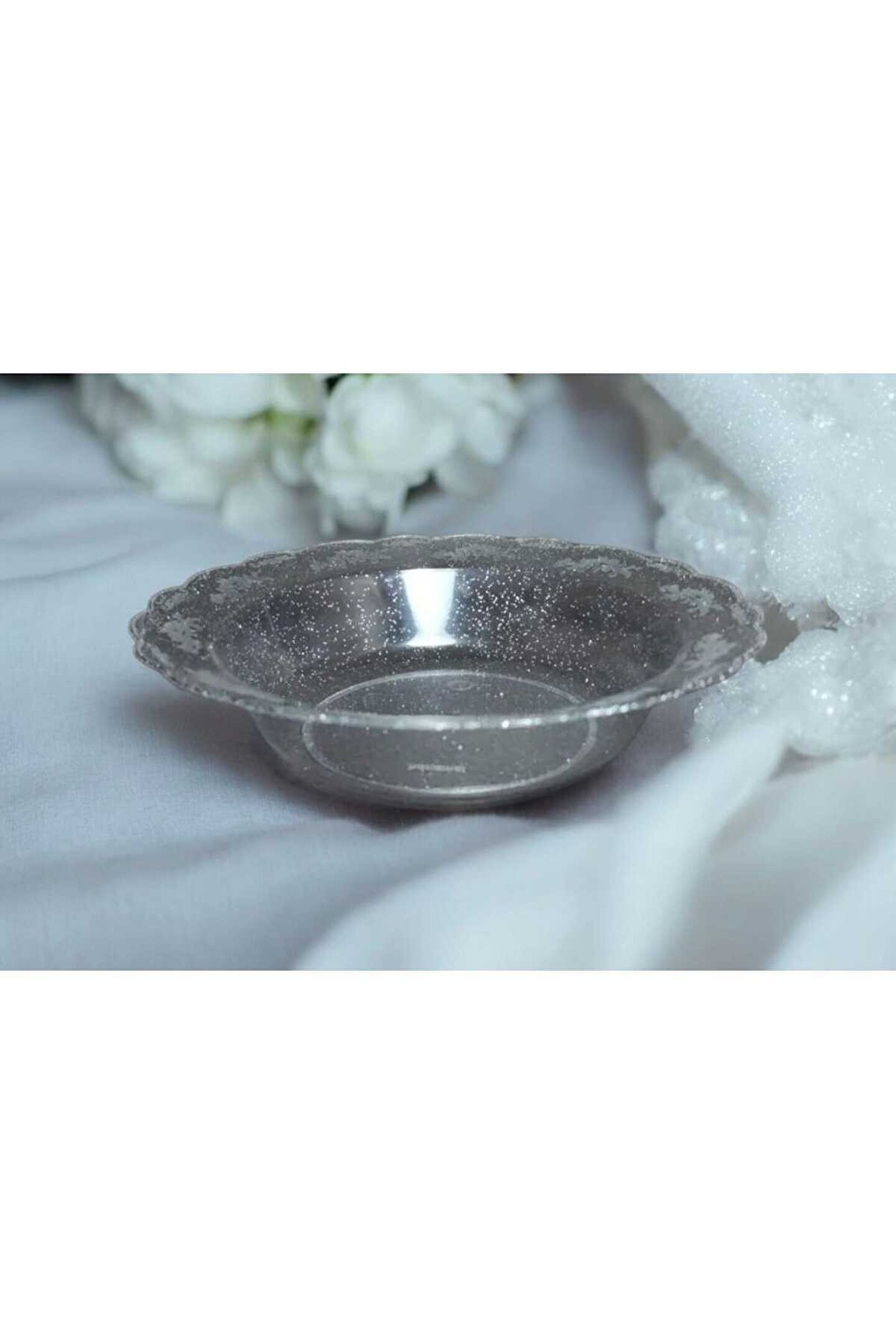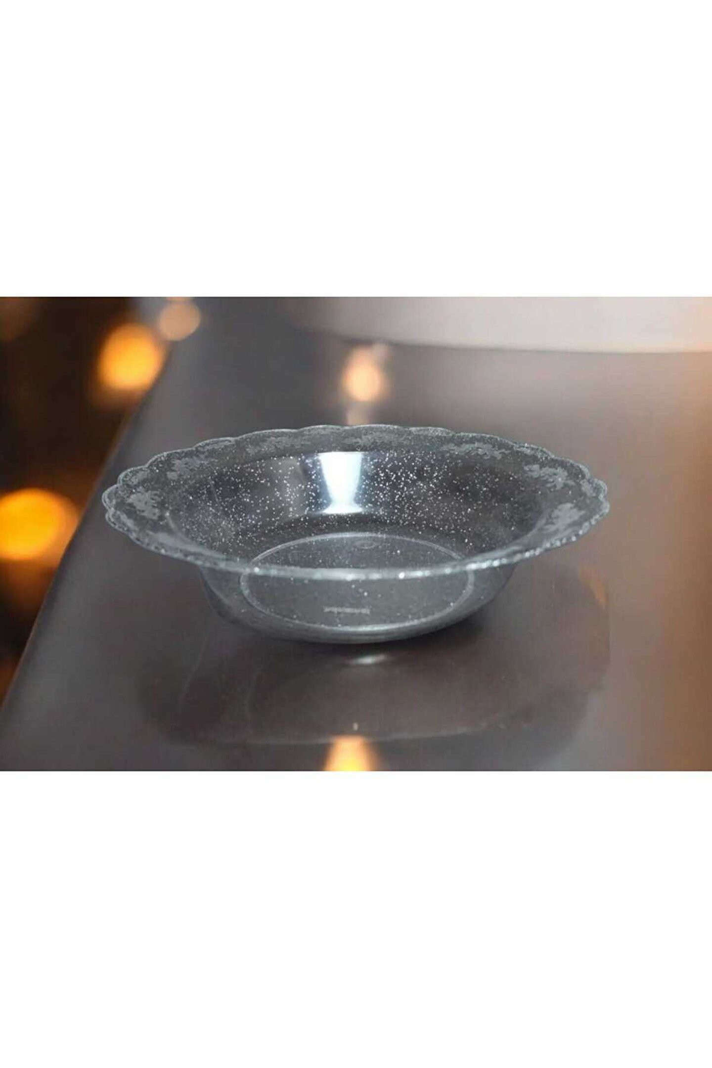 - BPA içermeyen plastik malzemeden üretilmiş, güvenle kullanabileceğiniz mika tabak.; - 19 cm çapında geniş yüzeyiyle doyurucu yemeklerinizi rahatlıkla servis edebilirsiniz.; - Yuvarlak şekli ile klasik tasarımı, her türlü sofra düzenine kolayca uyum sağlar.; - Çukur tabak yapısı sayesinde çorbalarınız ve diğer sıvı gıdalar için idealdir; dökülme riskini azaltır.; - Simli gümüş rengiyle şık görünüm sunar; parti ve doğum günü gibi özel anlarınızda göz alıcı bir atmosfer oluşturur.; - 34 x 48 cm boyutlarındaki bu tabaklar, standart mutfak gereçleriyle uyumlu boyuttadır.